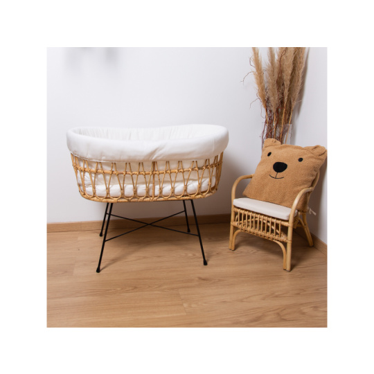 Košík na miminko ratanový kovové nohy + matrace + potah Jersey Ecru