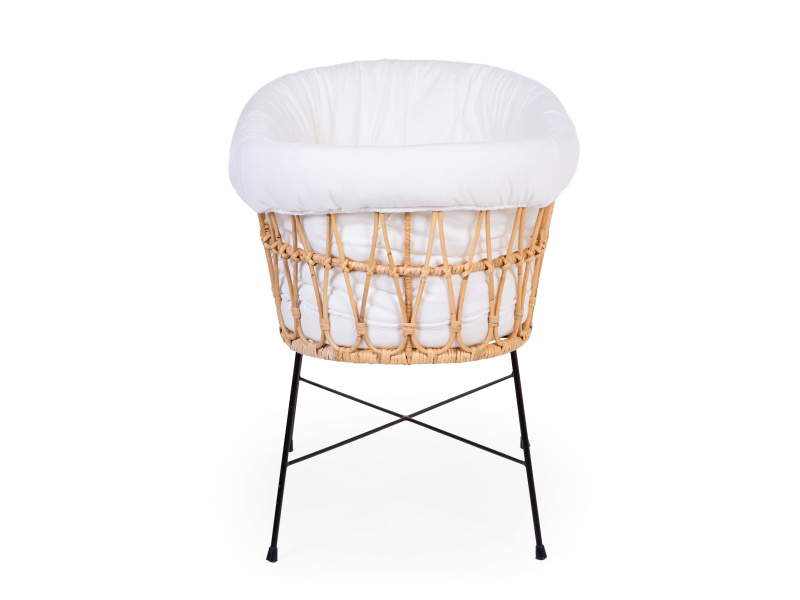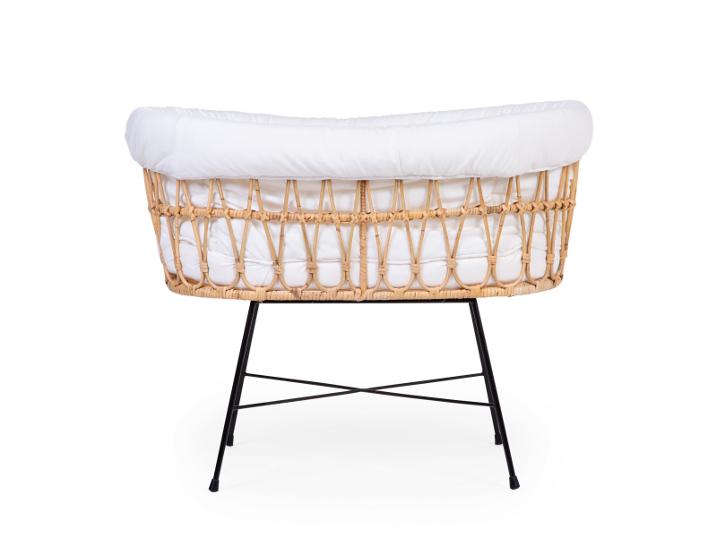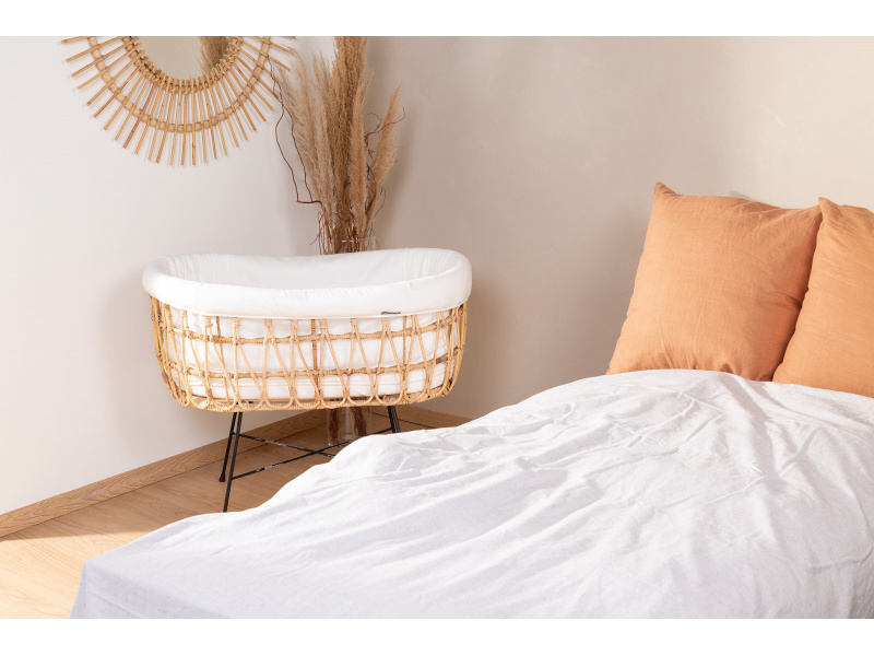 Košík na miminko v krásném přírodním designu je vyroben z ratanu. Jeho součástí je měkká matrace a textilní potah z měkké bavlny, který dotváří útulné a pohodlné prostředí pro miminko. Kovové nohy zaručují stabilitu košíku. Díky nízké hmotnosti se košík snadno přenáší, abyste mohli mít miminko vždy na dohled. Rozměry: 90 x 50 x 71 cm Materiál: ratan, matrace: 80% bavlna, 20% polyester, výplň: 100% polyester, potah: 100% bavlna. Potah je možno prát v pračce. Košík je vhodný pro miminko od narození do cca 6 měsíců (max. do 9 kg).