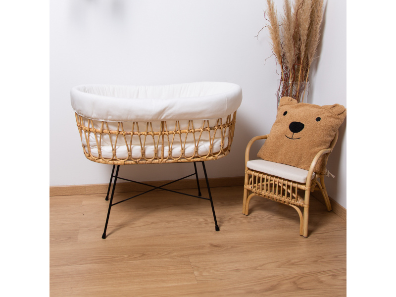 Košík na miminko ratanový kovové nohy + matrace + potah Jersey Ecru