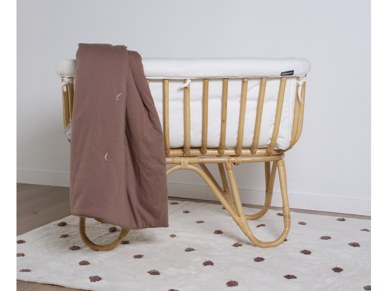 Košík na miminko v krásném přírodním designu je vyroben z ratanu. Jeho součástí je měkká matrace a textilní potah z měkké bavlny, který dotváří útulné a pohodlné prostředí pro miminko. Díky nízké hmotnosti se košík snadno přenáší, abyste mohli mít miminko vždy na dohled. Rozměry: košík 90 x 52 x 70 cm, matrace 81 x 42 x 5 cm Materiál: ratan, matrace: 80% bavlna, 20% polyester, výplň: 100% polyester, potah: 100% bavlna. Potah je možno prát v pračce. Košík je vhodný pro miminko od narození do cca 6 měsíců (max. do 9 kg).