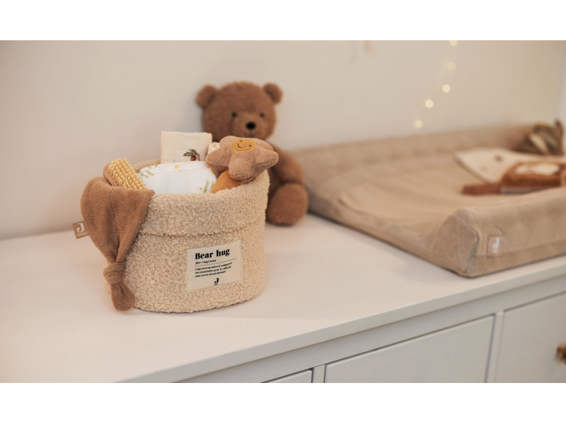 Praktický košík v krásném provedení z buklé textilie je ideální pro uložení toaletních potřeb pro přebalování, drobných hraček apod. a bude i krásným doplňkem v dětském pokoji či koupelně. Vnitřek košíku z omyvatelného polyuretanu umožňuje bezpečné uložení dětských krémů, olejíčků apod. Vnější materiál: 100% polyester, uvnitř: 100% PU Rozměry: průměr 18 cm, výška 14 cm