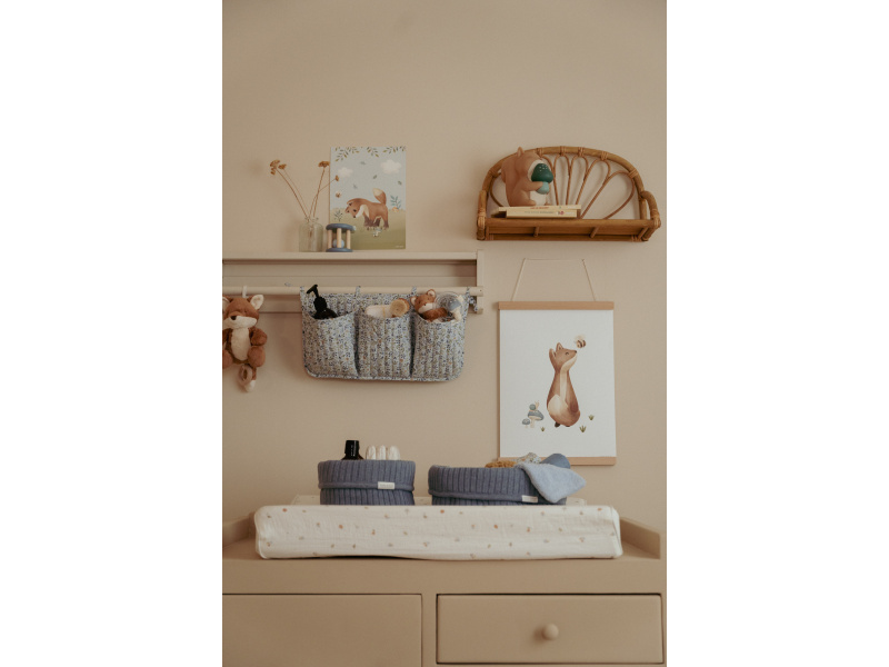 Košík v krásném pleteném provedení je vyroben z pevného bavlněného materiálu. Využijete jej pro přehledné uložení všeho, co potřebujete mít po ruce při každodenní péči o vaše miminko. Ohrnovací okraj umožňuje přizpůsobit výšku košíku vašim potřebám. Košík bude zároveň krásným doplňkem na přebalovacím pultu či poličce v dětském pokoji. Složení: 100% organická bavlna, uvnitř 100% bavlna s LDPE zátěrem Rozměry: 25 x 15 x 15 cm