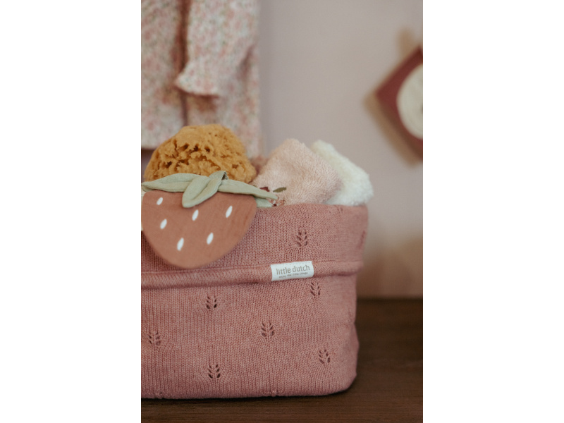 Košík v krásném pleteném provedení je vyroben z pevného bavlněného materiálu. Využijete jej pro přehledné uložení všeho, co potřebujete mít po ruce při každodenní péči o vaše miminko. Ohrnovací okraj umožňuje přizpůsobit výšku košíku vašim potřebám. Košík bude zároveň krásným doplňkem na přebalovacím pultu či poličce v dětském pokoji. Složení: 100% organická bavlna, uvnitř 100% bavlna s LDPE zátěrem Rozměry: 25 x 15 x 15 cm