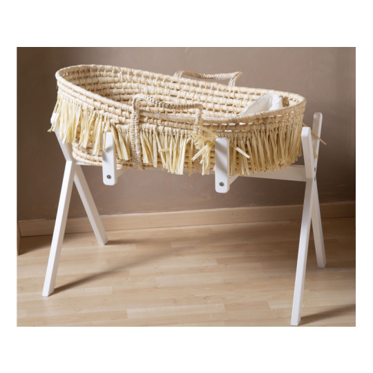 Košík na miminko v krásném přírodním designu s dekorativními třesněmi je vyroben z kukuřičných vláken. Držadla usnadňují přenášení prázdného košíku. Ke košíku je možné dokoupit samostatně prodávaný textilní potah nebo dřevěný stojan. Složení: Košík: kukuřičné vlákno, třásně: papír. Košík je vhodný pro miminko od narození. Rozměry: 84 x 47 x 29 cm