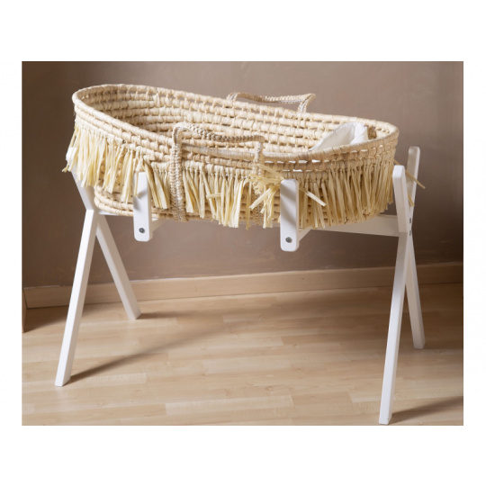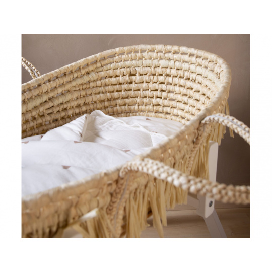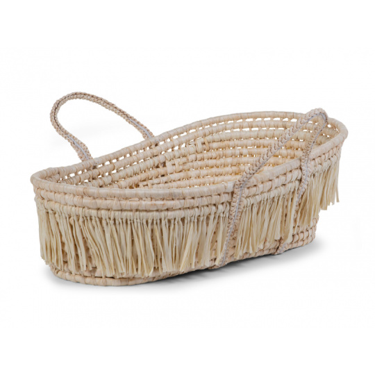 Košík na miminko v krásném přírodním designu s dekorativními třesněmi je vyroben z kukuřičných vláken a jeho součástí je měkká matrace. Držadla usnadňují přenášení prázdného košíku. Ke košíku je možné dokoupit samostatně prodávaný textilní potah nebo dřevěný stojan. Složení: Košík: kukuřičné vlákno, třásně: papír, matrace: 55% bavlna, 45% polyester, výplň matrace: 100% polyester Košík je vhodný pro miminko od narození. Rozměry: 84 x 47 x 29 cm