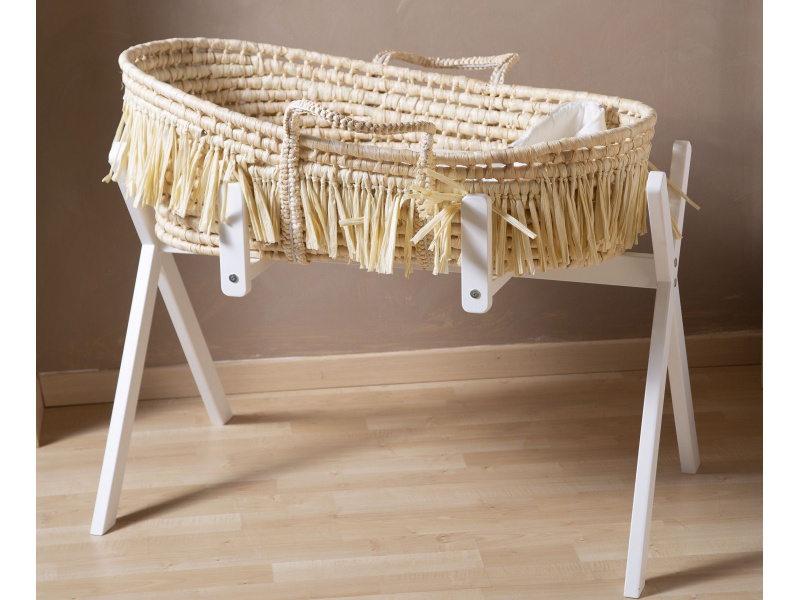 Košík na miminko v krásném přírodním designu s dekorativními třesněmi je vyroben z kukuřičných vláken. Držadla usnadňují přenášení prázdného košíku. Ke košíku je možné dokoupit samostatně prodávaný textilní potah nebo dřevěný stojan. Složení: Košík: kukuřičné vlákno, třásně: papír. Košík je vhodný pro miminko od narození. Rozměry: 84 x 47 x 29 cm