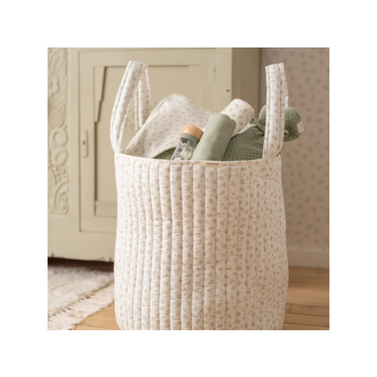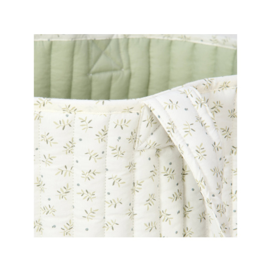 Extra velký úložný košík Little Dutch pomůže udržet dětský pokoj krásně uklizený. Je ideální na hračky, plyšáky, deky apod. a díky svému elegantnímu designu se stane stylovým doplňkem každého interiéru. Oboustranné provedení umožňuje volbu vzhledu košíku dle vašich preferencí. Velkorysý úložný prostor - perfektní pro přehledné ukládání hraček, oblečení či doplňků Pohodlné přenášení - praktické textilní úchyty usnadňují manipulaci a přenášení Měkký a odolný materiál - vyroben z 100% organické bavlny, s prošívanou, polstrovanou strukturou, která působí luxusně a je příjemná na dotek Stylový design - jemný vzor Blueberry Leaves v odstínu zelené dodá pokojíčku přirozený a klidný vzhled Univerzální využití - hodí se jako praktický i dekorativní doplněk do dětského pokoje, herny i obývacího pokoje Košík je součástí designové kolekce textilních doplňků Little Dutch Blueberry Leaves. Složení: 100% organická bavlna, výplň 100% polyester Rozměry: 35 x 35 x 45 cm Možno prát v pračce.