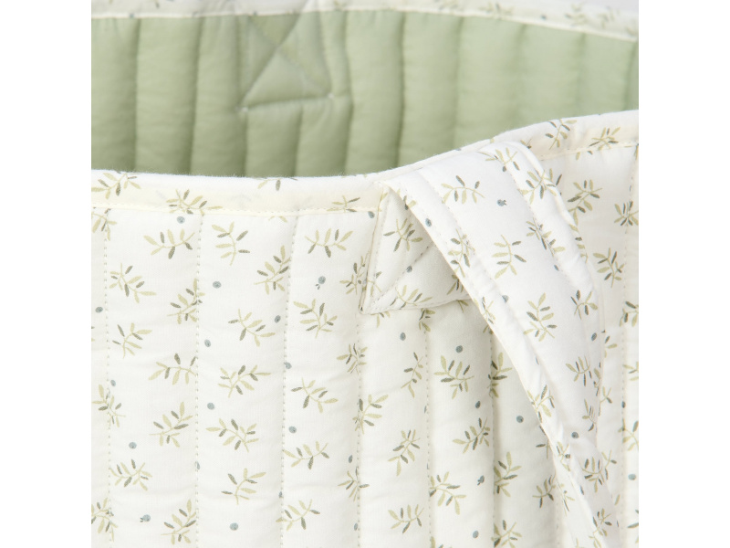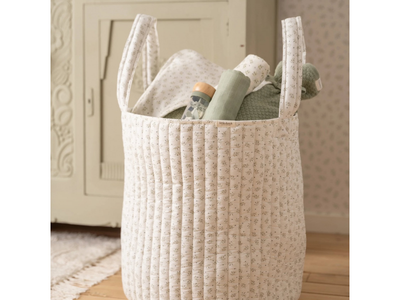 Extra velký úložný košík Little Dutch pomůže udržet dětský pokoj krásně uklizený. Je ideální na hračky, plyšáky, deky apod. a díky svému elegantnímu designu se stane stylovým doplňkem každého interiéru. Oboustranné provedení umožňuje volbu vzhledu košíku dle vašich preferencí. Velkorysý úložný prostor - perfektní pro přehledné ukládání hraček, oblečení či doplňků Pohodlné přenášení - praktické textilní úchyty usnadňují manipulaci a přenášení Měkký a odolný materiál - vyroben z 100% organické bavlny, s prošívanou, polstrovanou strukturou, která působí luxusně a je příjemná na dotek Stylový design - jemný vzor Blueberry Leaves v odstínu zelené dodá pokojíčku přirozený a klidný vzhled Univerzální využití - hodí se jako praktický i dekorativní doplněk do dětského pokoje, herny i obývacího pokoje Košík je součástí designové kolekce textilních doplňků Little Dutch Blueberry Leaves. Složení: 100% organická bavlna, výplň 100% polyester Rozměry: 35 x 35 x 45 cm Možno prát v pračce.
