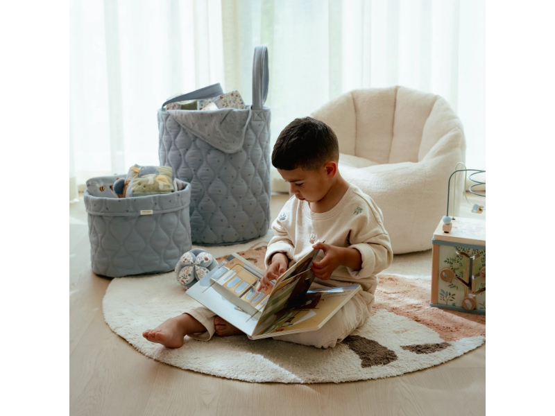 Košík s krásným jemným potiskem je vyroben z pevného bavlněného materiálu. Využijete jej pro přehledné uložení všeho, co potřebujete mít po ruce  při každodenní péči o vaše miminko nebo na rychlé uklizení drobných hraček. Košík bude zároveň krásným doplňkem v dětském pokoji. Oboustranné provedení umožňuje volbu vzhledu košíku dle vašich preferencí. Košík je součástí designové kolekce textilních doplňků Little Dutch Pure. Složení: 100% organická bavlna, výplň 100% polyester Rozměry: 30 x 30 x 25 cm Možno prát v pračce.