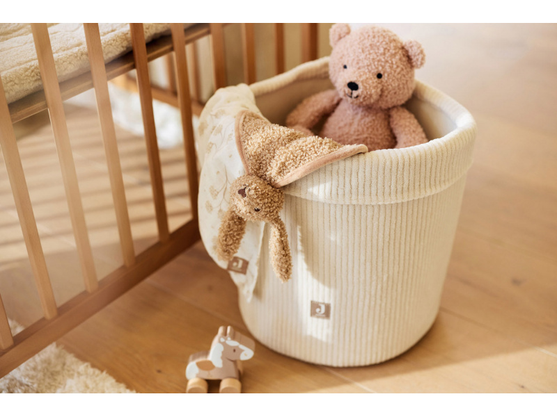 Košík z příjemného žebrovaného materiálu využijete pro přehledné uložení všeho, co potřebujete mít po ruce při každodenní péči o vaše miminko nebo na rychlé uklizení drobných hraček. Košík bude zároveň krásným doplňkem v dětském pokoji. Složení: 100% polyester Rozměry: 30 x 30 x 35 cm Údržba: neperte, pouze otírejte vlhkým hadříkem