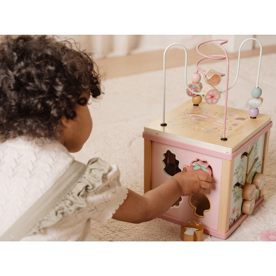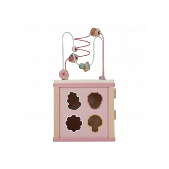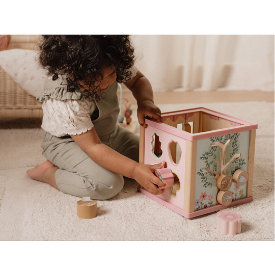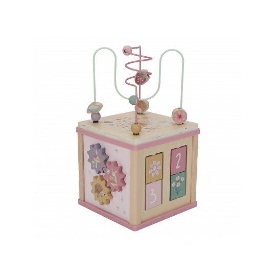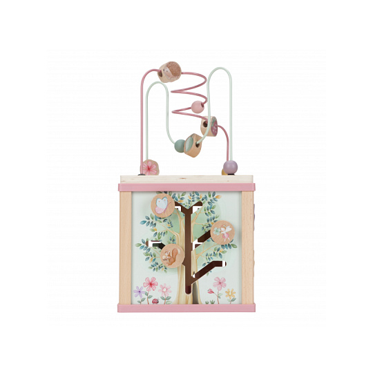 Krásná dřevěná kostka s aktivitami a motivy ze života na zahradě vzbuzuje u dětí zvědavost a poskytuje jim spoustu zábavy. Jednotlivé strany kostky obsahují nabízí různorodé aktivity - např. třídění tvarů, rotující převody, hádanky či spirály s posuvnými korálky. Hračka pomáhá rozvíjet jemnou motoriku i kreativitu dítěte. Hračka je součástí designové kolekce hraček a doplňků Little Dutch Fairy Garden inspirované životem na zahradě. Vyrobeno z dřeva certifikovaného FSC. Rozměry: 20 x 20 x 40 cm Vhodné pro děti od 18 měsíců.