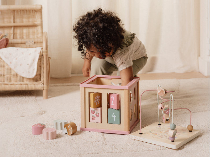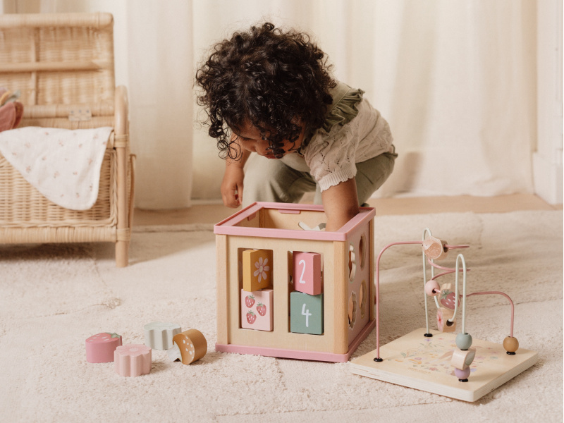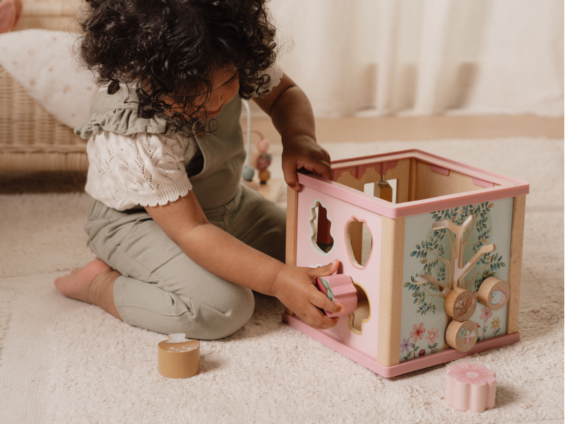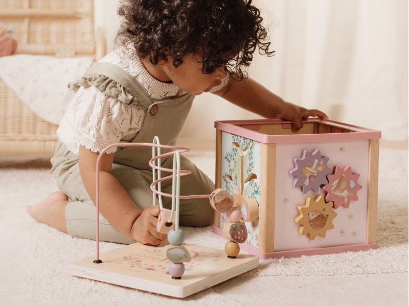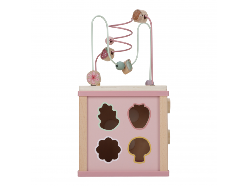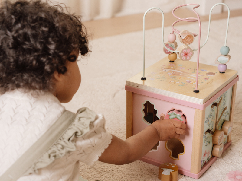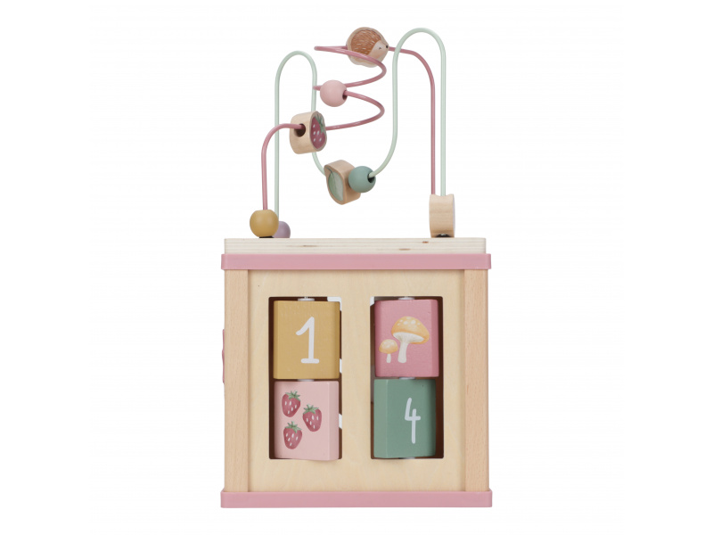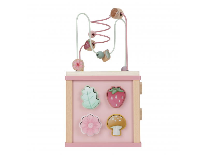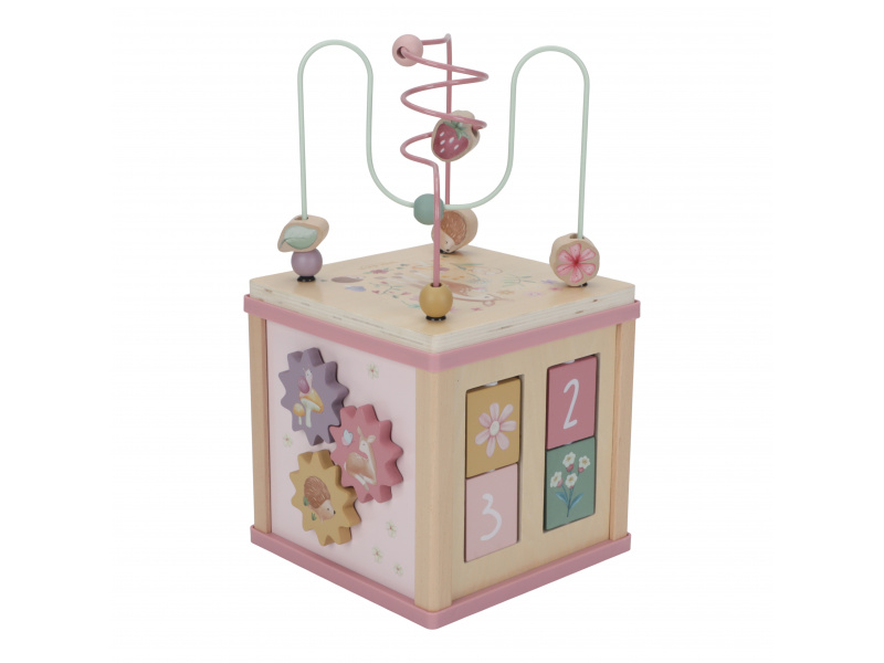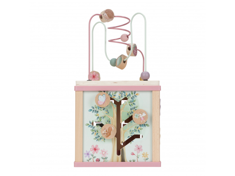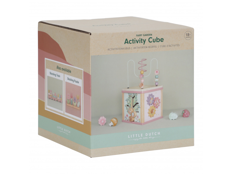 Krásná dřevěná kostka s aktivitami a motivy ze života na zahradě vzbuzuje u dětí zvědavost a poskytuje jim spoustu zábavy. Jednotlivé strany kostky obsahují nabízí různorodé aktivity - např. třídění tvarů, rotující převody, hádanky či spirály s posuvnými korálky. Hračka pomáhá rozvíjet jemnou motoriku i kreativitu dítěte. Hračka je součástí designové kolekce hraček a doplňků Little Dutch Fairy Garden inspirované životem na zahradě. Vyrobeno z dřeva certifikovaného FSC. Rozměry: 20 x 20 x 40 cm Vhodné pro děti od 18 měsíců.