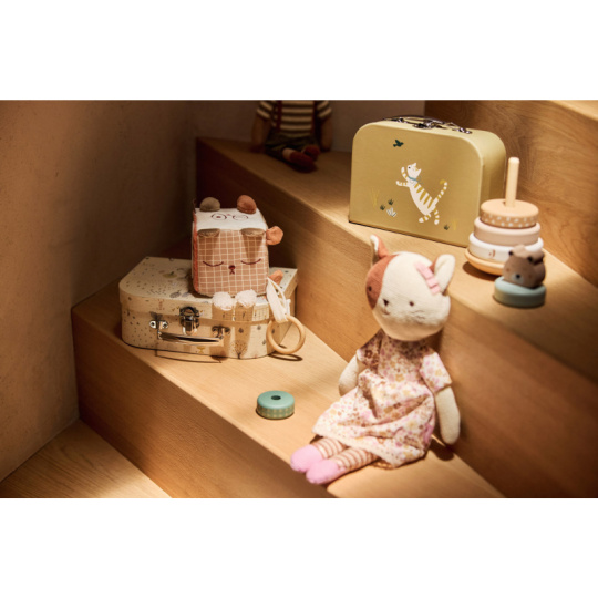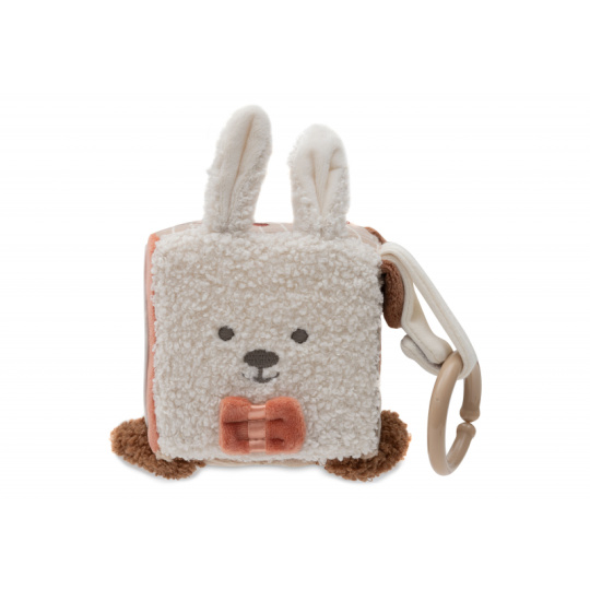 Měkká plyšová kostka s krásnými motivy zvířátek je díky svému provedení snadno uchopitelná malými dětskými ručičkami. Různorodé textury, vyšívané ilustrace, chrastění i šustění lákají dítě ke zkoumání. Rozměry: 10 x 10 x 10 cm Složení: 100% polyester Možno prát v ruce. Vhodné pro děti od narození.