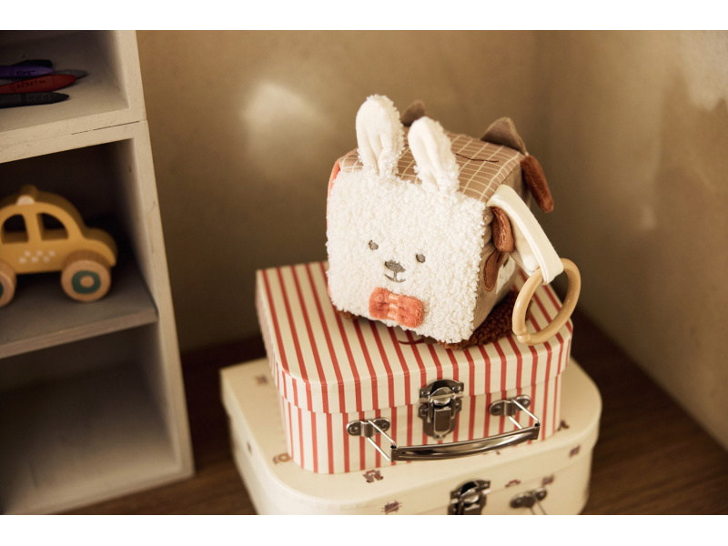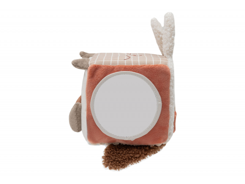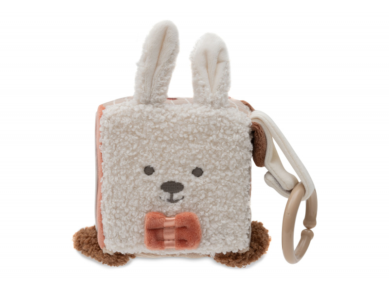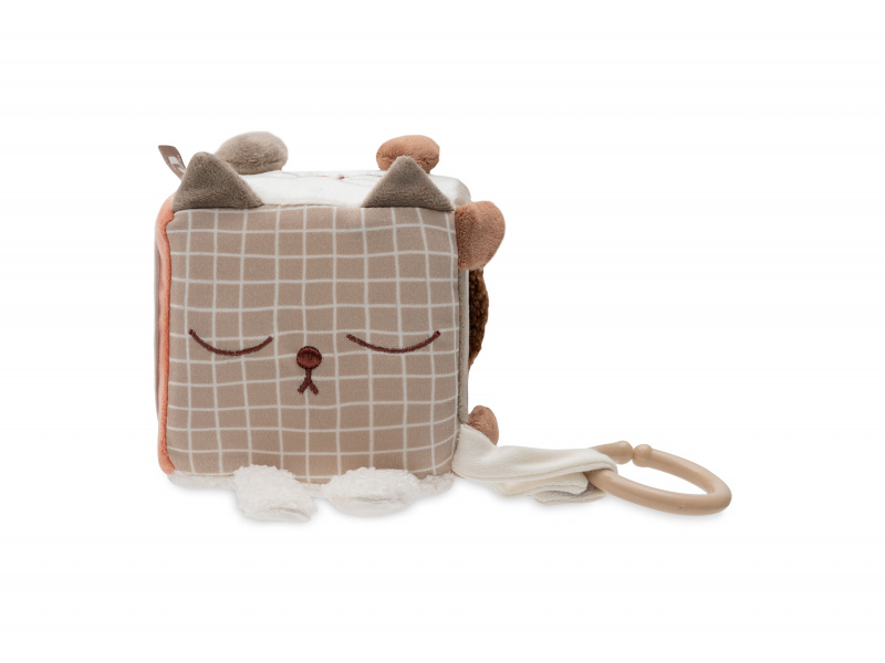 Měkká plyšová kostka s krásnými motivy zvířátek je díky svému provedení snadno uchopitelná malými dětskými ručičkami. Různorodé textury, vyšívané ilustrace, chrastění i šustění lákají dítě ke zkoumání. Rozměry: 10 x 10 x 10 cm Složení: 100% polyester Možno prát v ruce. Vhodné pro děti od narození.