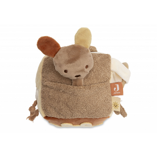 Měkká plyšová kostka s krásnými motivy klokana, koaly a medvídka je díky svému provedení snadno uchopitelná malými dětskými ručičkami. Různorodé textury, vyšívané ilustrace, bezpečné zrcátko, chrastění i šustění lákají dítě ke zkoumání. Hračka stimuluje smysly a podporuje rozvoj motorických dovedností dítěte. Rozměry: 11 x 11 x 11 cm Složení: 100% polyester, výplň 100% polyester Možno prát v ruce. Vhodné pro děti od narození.