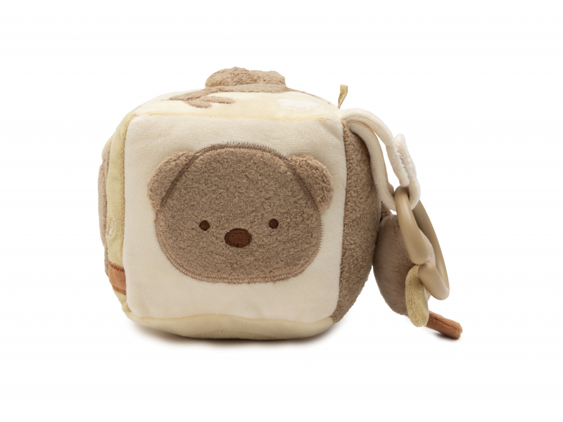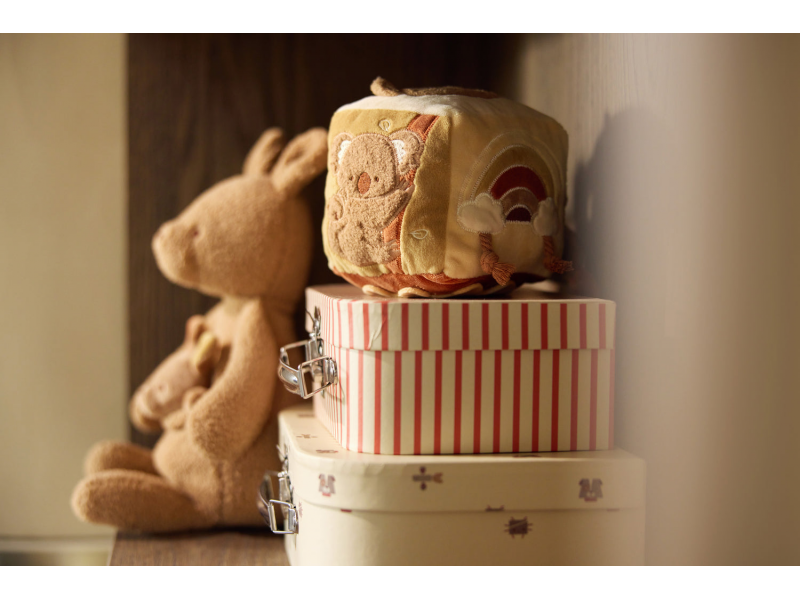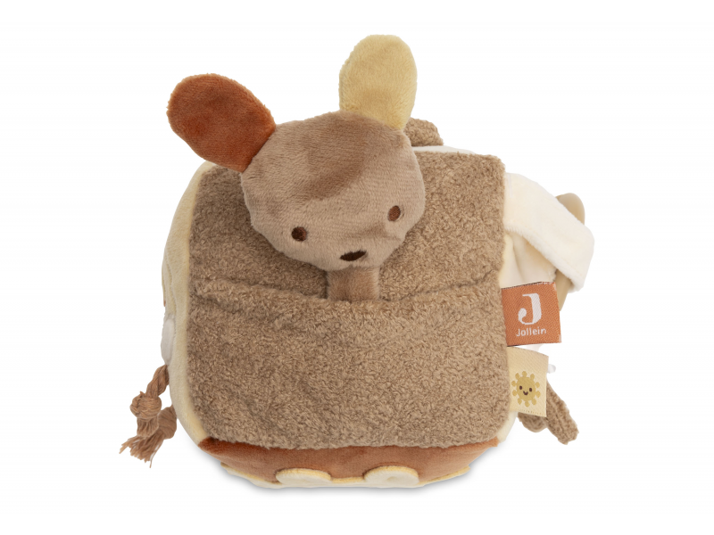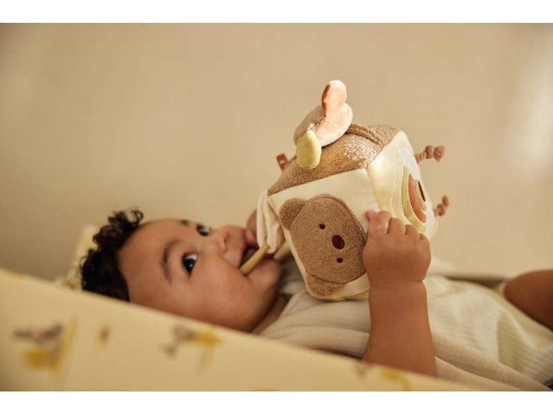 Měkká plyšová kostka s krásnými motivy klokana, koaly a medvídka je díky svému provedení snadno uchopitelná malými dětskými ručičkami. Různorodé textury, vyšívané ilustrace, bezpečné zrcátko, chrastění i šustění lákají dítě ke zkoumání. Hračka stimuluje smysly a podporuje rozvoj motorických dovedností dítěte. Rozměry: 11 x 11 x 11 cm Složení: 100% polyester, výplň 100% polyester Možno prát v ruce. Vhodné pro děti od narození.