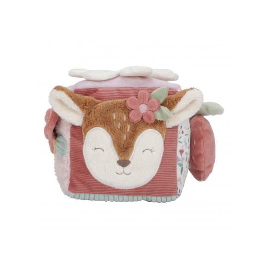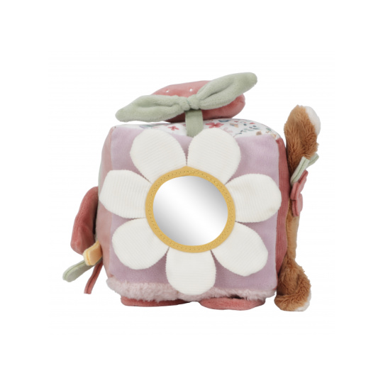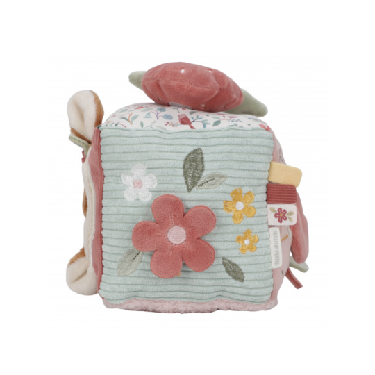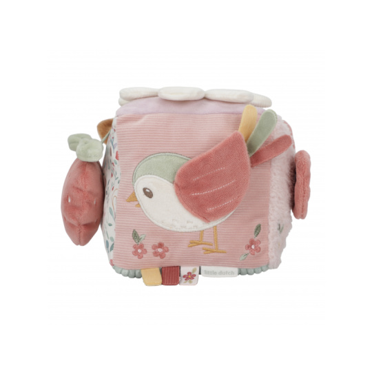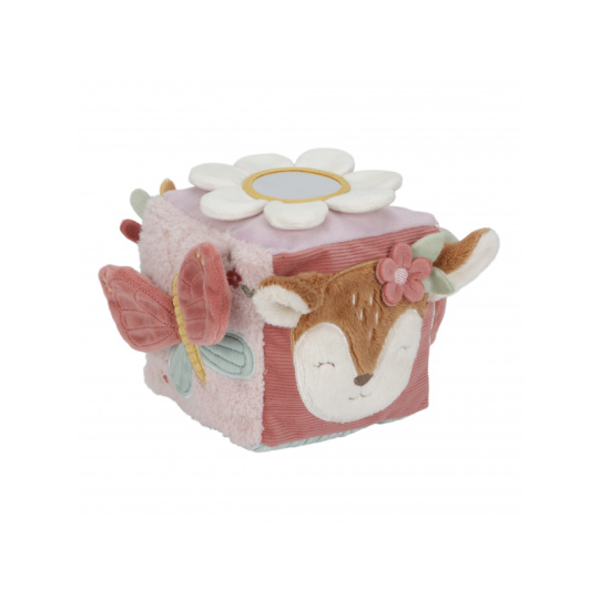 Měkká plyšová kostka s krásnými motivy ze života na zahradě je díky svému provedení snadno uchopitelná malými dětskými ručičkami. Různorodé textury, připevněné hračky a vyšívané ilustrace lákají dítě ke zkoumání, kostka navíc při pohybu jemně cinká. Hračka je součástí designové kolekce hraček a doplňků Little Dutch Fairy Garden inspirované životem na zahradě. Rozměry: 14 x 14 x 14 cm Složení: 100% polyester Vhodné pro děti od narození.