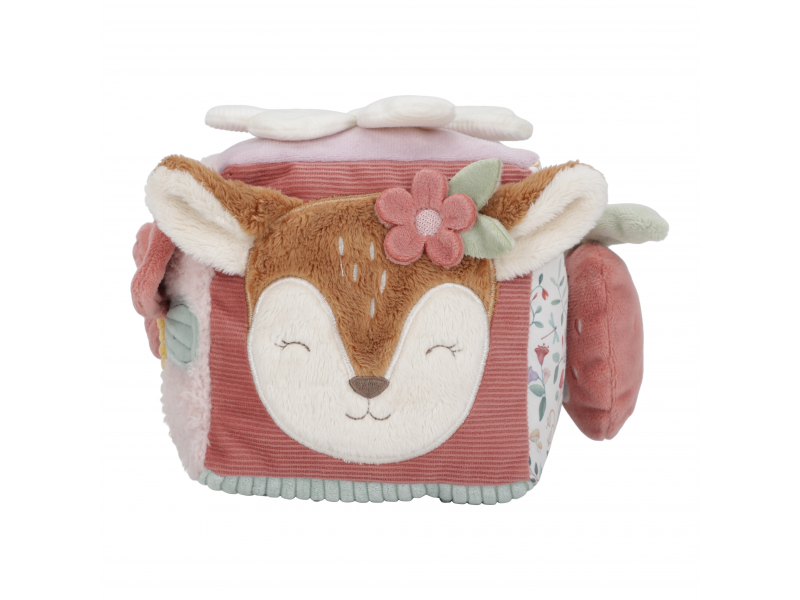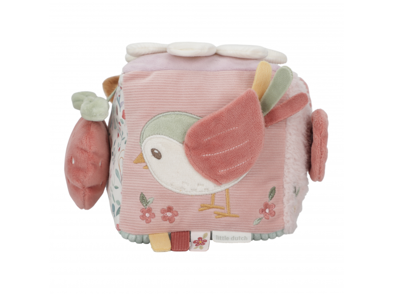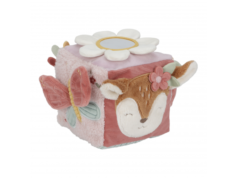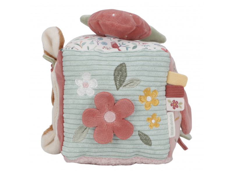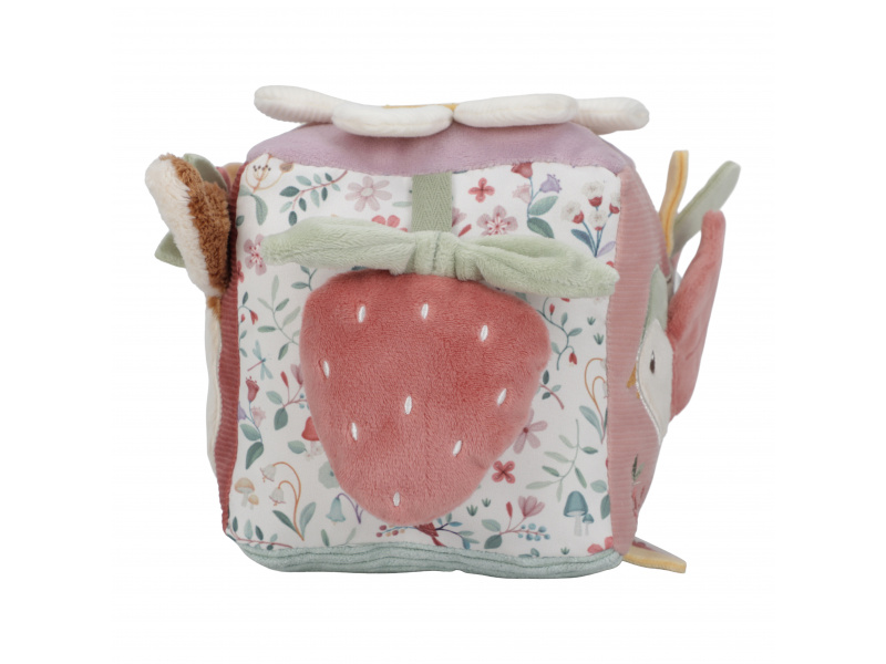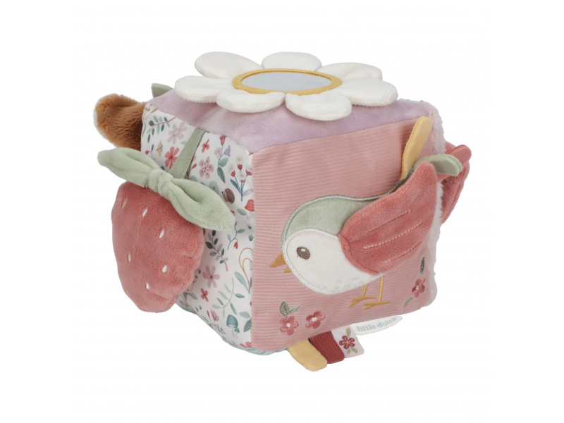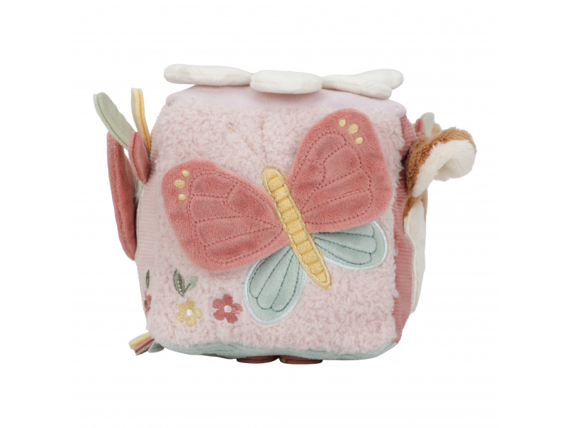 Měkká plyšová kostka s krásnými motivy ze života na zahradě je díky svému provedení snadno uchopitelná malými dětskými ručičkami. Různorodé textury, připevněné hračky a vyšívané ilustrace lákají dítě ke zkoumání, kostka navíc při pohybu jemně cinká. Hračka je součástí designové kolekce hraček a doplňků Little Dutch Fairy Garden inspirované životem na zahradě. Rozměry: 14 x 14 x 14 cm Složení: 100% polyester Vhodné pro děti od narození.
