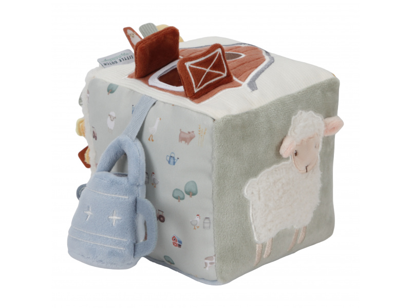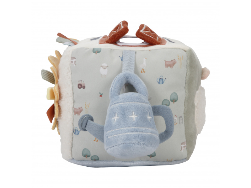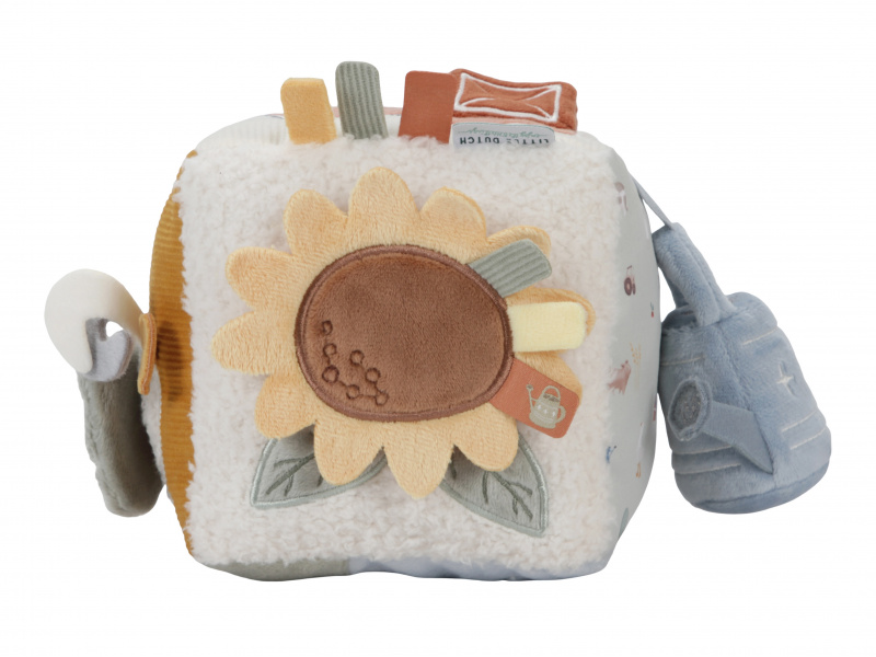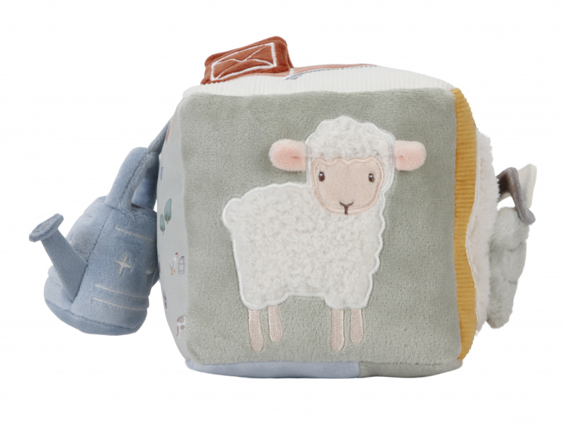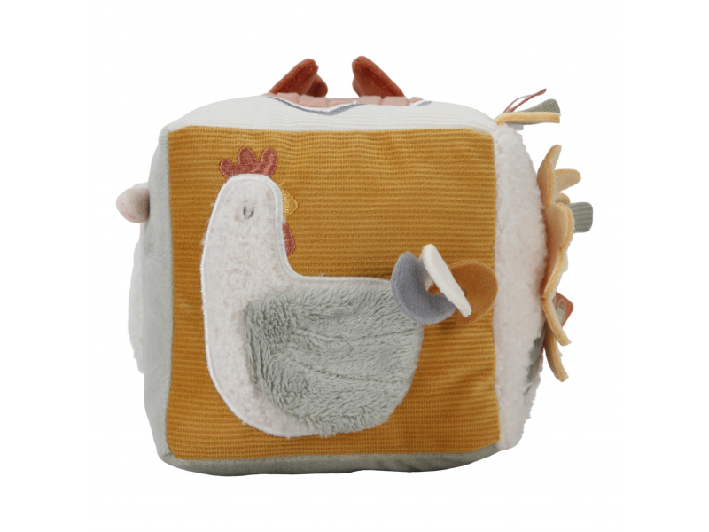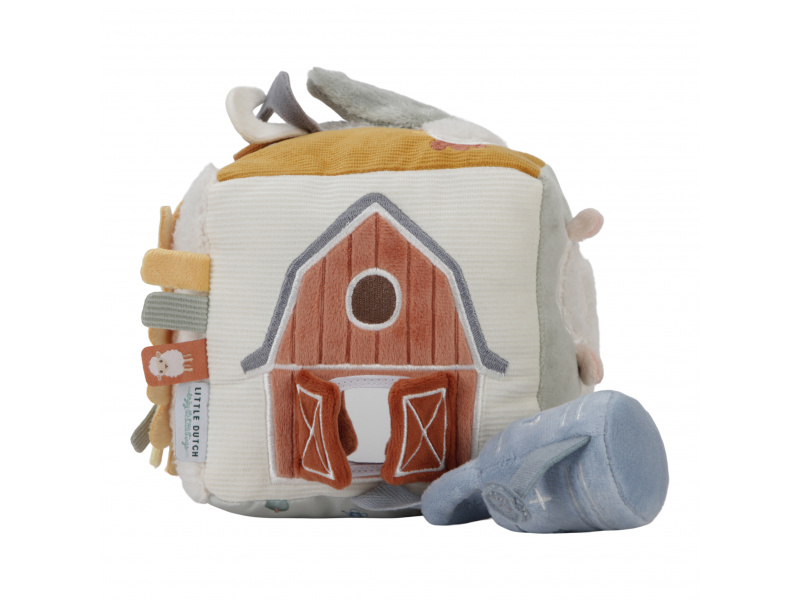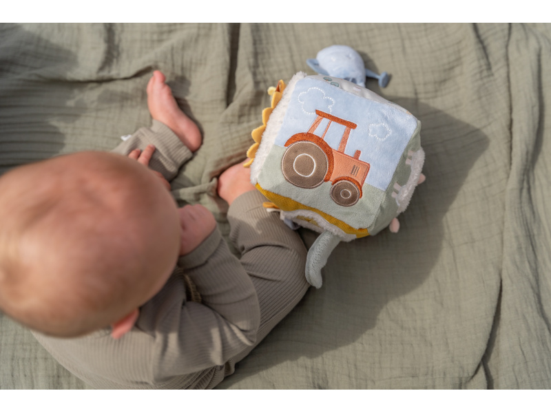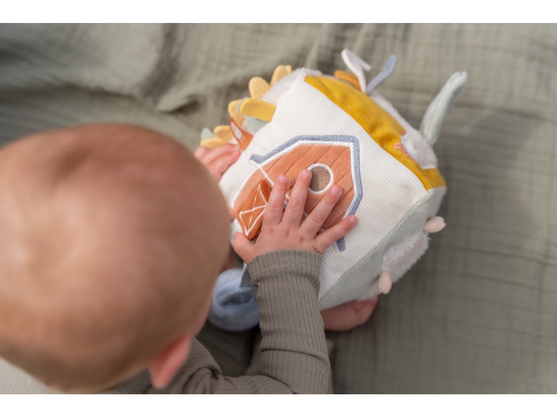 Měkká plyšová kostka je díky svému provedení snadno uchopitelná malými dětskými ručičkami. Různorodé textury, připevněné hračky a vyšívané ilustrace motivů ze života na farmě lákají dítě ke zkoumání, kostka navíc při pohybu jemně cinká. Hračka je součástí designové kolekce hraček Little Dutch Farma. Rozměry: 14 x 14 x 14 cm Složení: 100% polyester Vhodné pro děti od narození.
