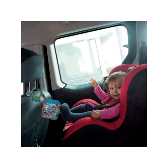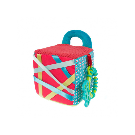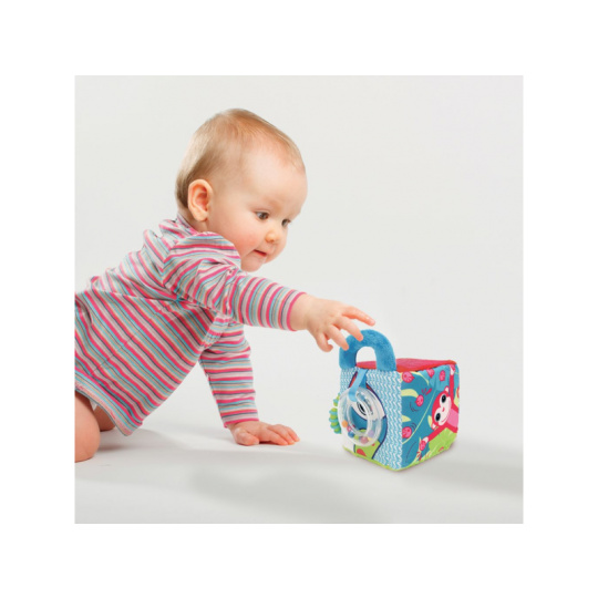 Měkká textilní kostka nabízí různorodé aktivity, které vaše dítě zabaví a zároveň pomáhají rozvíjet jeho jednotlivé smysly i motorické dovednosti dítěte. Pozornost dítěte upoutají výrazné ilustrace motivů z džungle, průhledné chrastítko s korálky, plyšová rukojeť i kousátko. Kousátko v podobě kroužku umožňuje kostku připevnit na kočárek či autosedačku. Rozměry: 10 x 15 x 10 cm Vhodné pro děti od 3 měsíců.