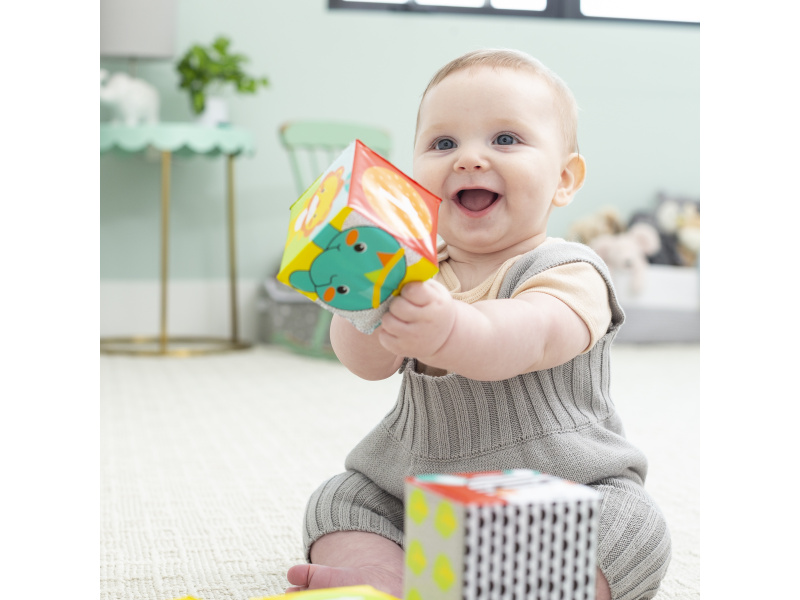 Omyvatelné kostky s krásnými ilustracemi zvířátek ve výrazných kontrastních barvách jsou vhodné pro použití ve vaně i jako první kostky pro stavění věží a společné vyprávění o zvířátkách, barvách i číslech. Vhodné pro děti od narození.