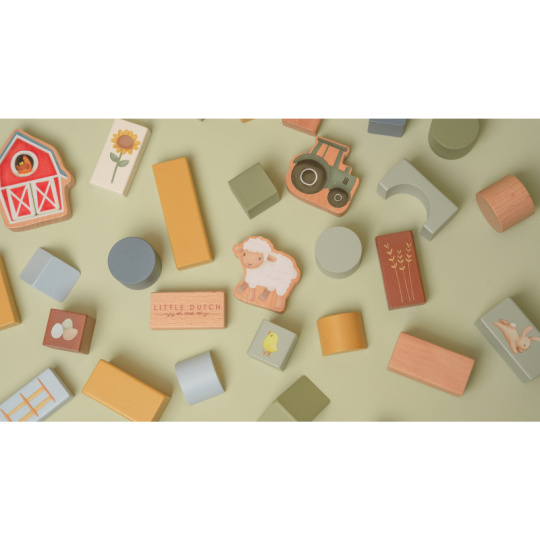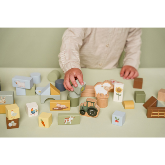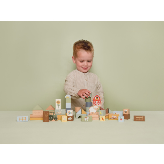 Dřevěné kostky jsou doslova nezbytností do každého dětského pokoje. Tuba obsahuje 50 dřevěných kostek různých barev a tvarů s krásným potiskem motivů ze života na farmě. Popusťte uzdu fantazii a vytvářejte spolu s vaším dítětem kreativní stavby. Když hra skončí, jednoduše kostky uložíte zpět do tuby! Hračka je součástí designové kolekce hraček a doplňků Little Dutch Farma. Vyrobeno z dřeva certifikovaného FSC. Rozměry balení: 20 x 16,5 x 16,5 cm Vhodné pro děti od 2 let.
