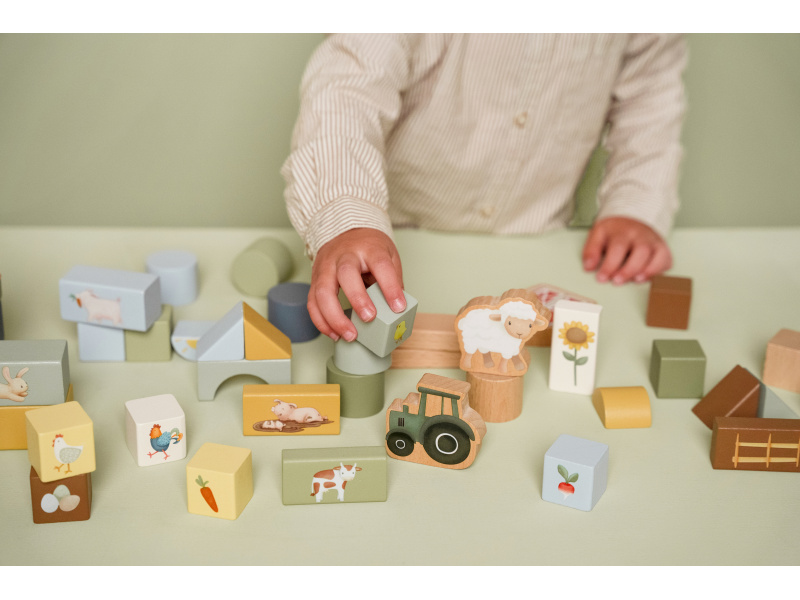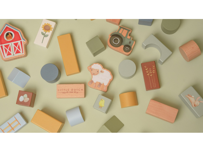 Dřevěné kostky jsou doslova nezbytností do každého dětského pokoje. Tuba obsahuje 50 dřevěných kostek různých barev a tvarů s krásným potiskem motivů ze života na farmě. Popusťte uzdu fantazii a vytvářejte spolu s vaším dítětem kreativní stavby. Když hra skončí, jednoduše kostky uložíte zpět do tuby! Hračka je součástí designové kolekce hraček a doplňků Little Dutch Farma. Vyrobeno z dřeva certifikovaného FSC. Rozměry balení: 20 x 16,5 x 16,5 cm Vhodné pro děti od 2 let.