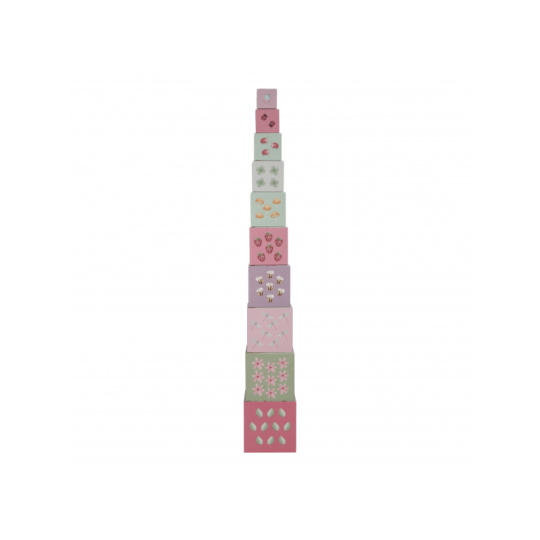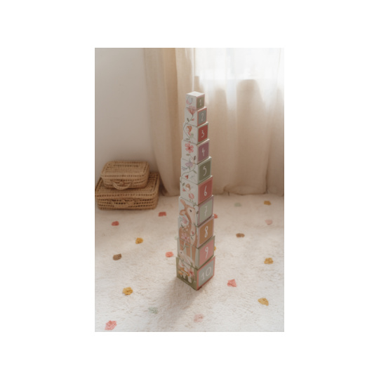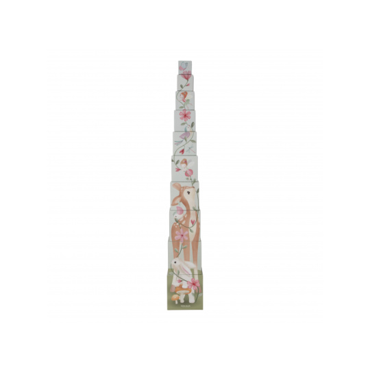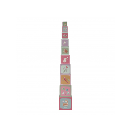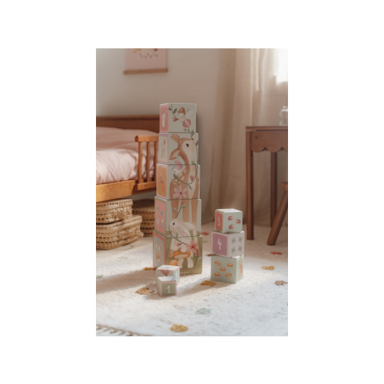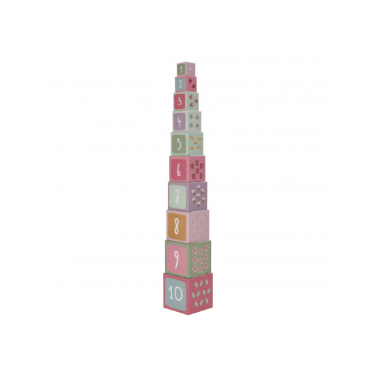 Barevné kartonové kostky s krásnými ilustracemi motivů ze života na zahradě. Nechte vaše dítě kostky skládat na sebe do vysoké věže nebo vedle sebe podle velikosti. Ve starším věku se dítě s pomocí očíslovaných kostek může hravým způsobem učit počítat i rozpoznávat číslice. Nejmenší kostka má 5 cm a největší má 14 cm. Po skončení hraní kostky snadno uložíte složením do sebe. Hračka je součástí designové kolekce hraček a doplňků Little Dutch Fairy Garden inspirované životem na zahradě. Rozměry věže: 14 x 14 x 95 cm Vhodné pro děti od 18 měsíců.