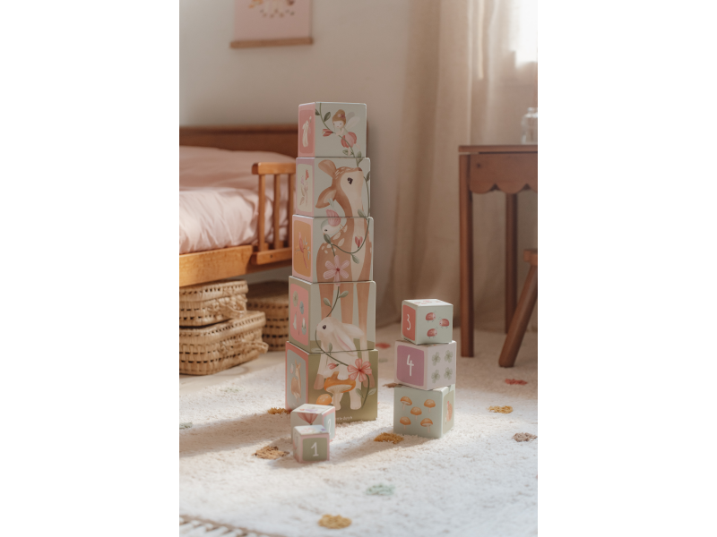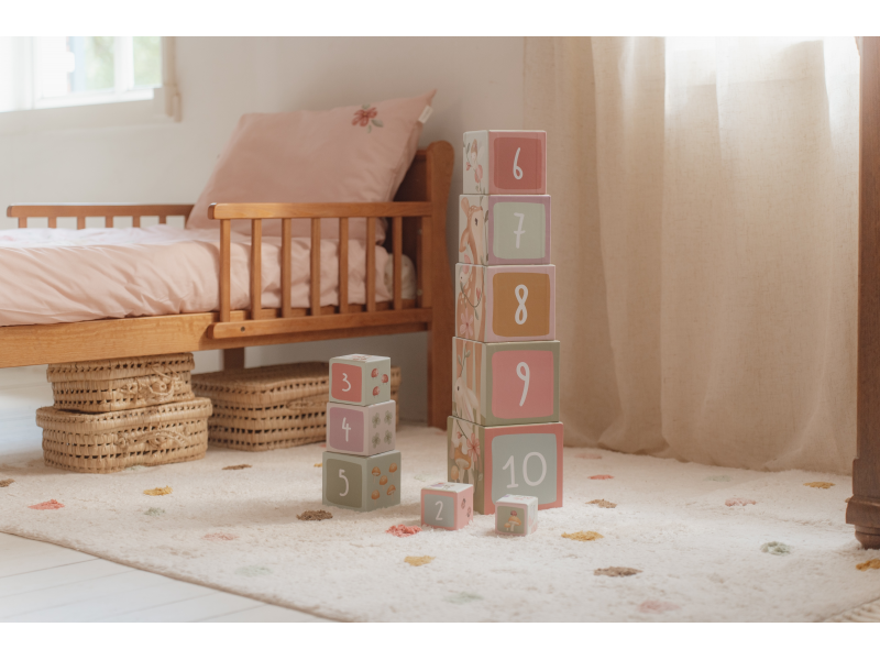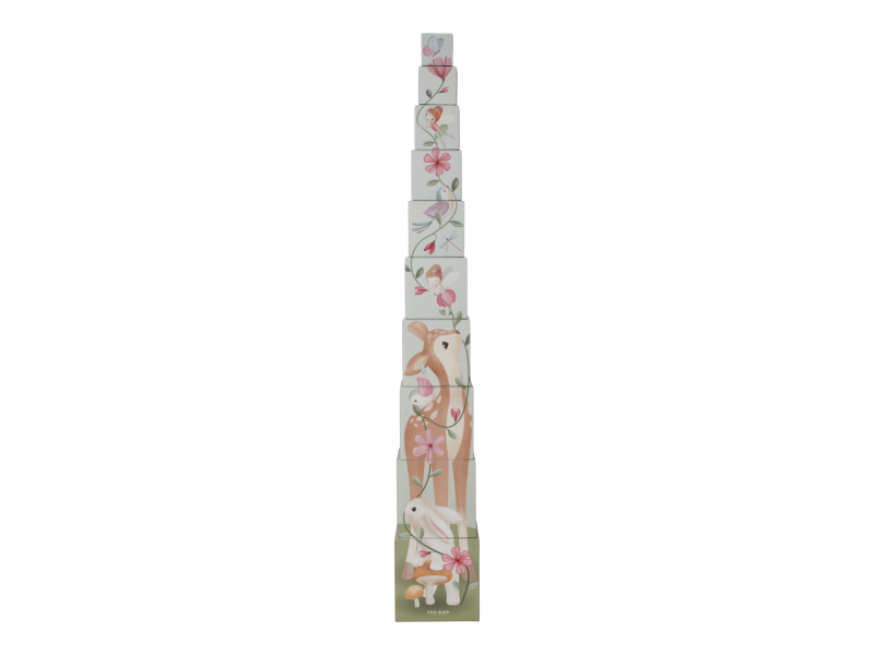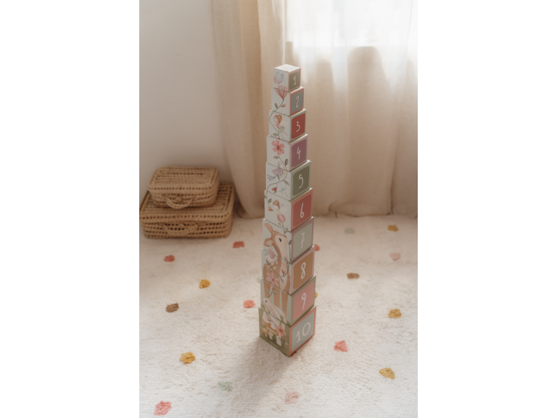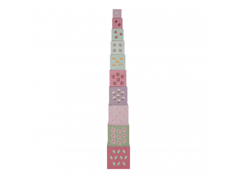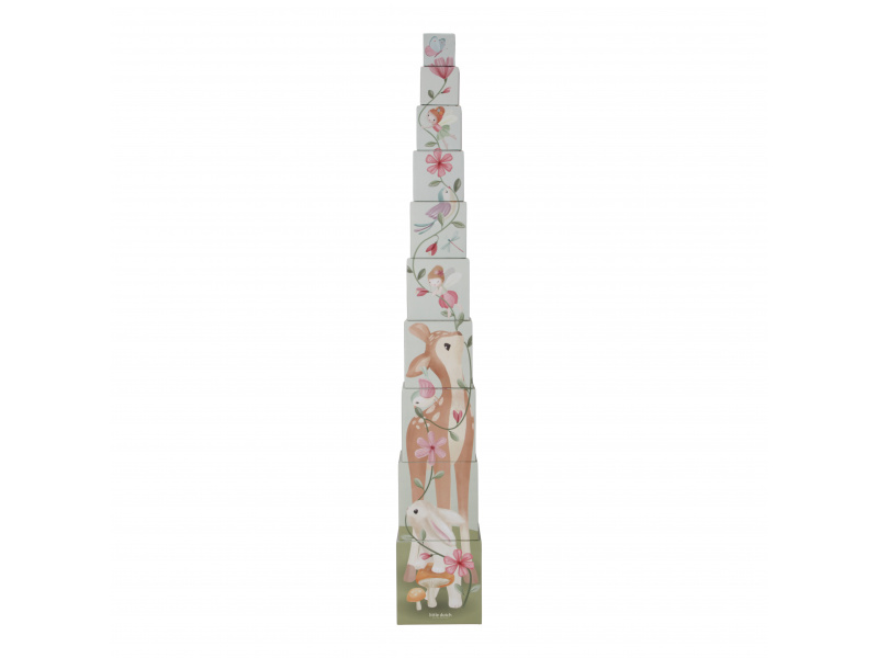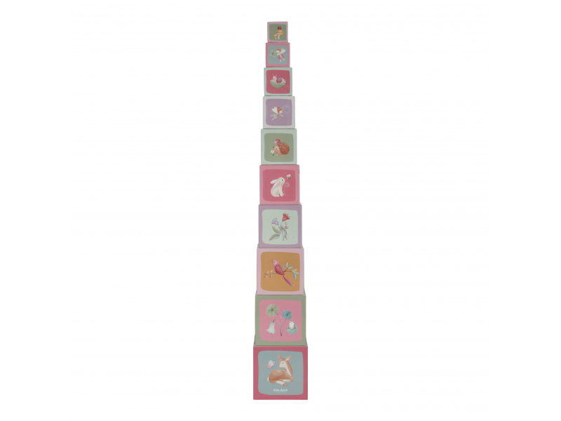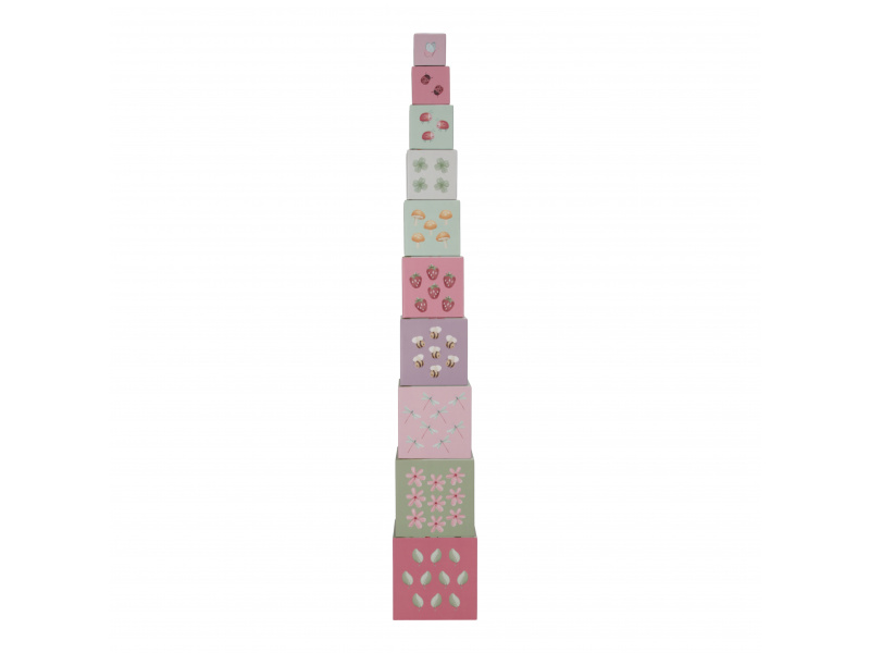 Barevné kartonové kostky s krásnými ilustracemi motivů ze života na zahradě. Nechte vaše dítě kostky skládat na sebe do vysoké věže nebo vedle sebe podle velikosti. Ve starším věku se dítě s pomocí očíslovaných kostek může hravým způsobem učit počítat i rozpoznávat číslice. Nejmenší kostka má 5 cm a největší má 14 cm. Po skončení hraní kostky snadno uložíte složením do sebe. Hračka je součástí designové kolekce hraček a doplňků Little Dutch Fairy Garden inspirované životem na zahradě. Rozměry věže: 14 x 14 x 95 cm Vhodné pro děti od 18 měsíců.