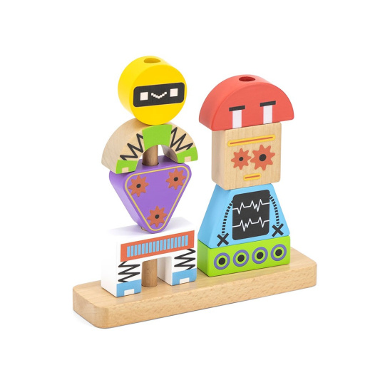 Skládačky - Roboti od společnosti Viga jsou ideálním dárkem pro dítě, který podpoří jeho rozvoj a usnadní vzdělávání. Dítě na základě přiložených kartiček - předloh rozdělených podle obtížnosti, musí uspořádat roboty do různých konfigurací. První úroveň obtížnosti se skládá ze 6 kartiček, druhá úroveň obtížnosti se skládá také ze 6 kartiček s náročnějším uspořádáním kostek a třetí úroveň obtížnosti se skládá z 10 kartiček, na kterých jsou vyznačeny pouze obrysy kostek. Batolata mají možnost tvořit podle své fantazie a uspořádat si z dostupných prvků vlastní vzhled robotů.