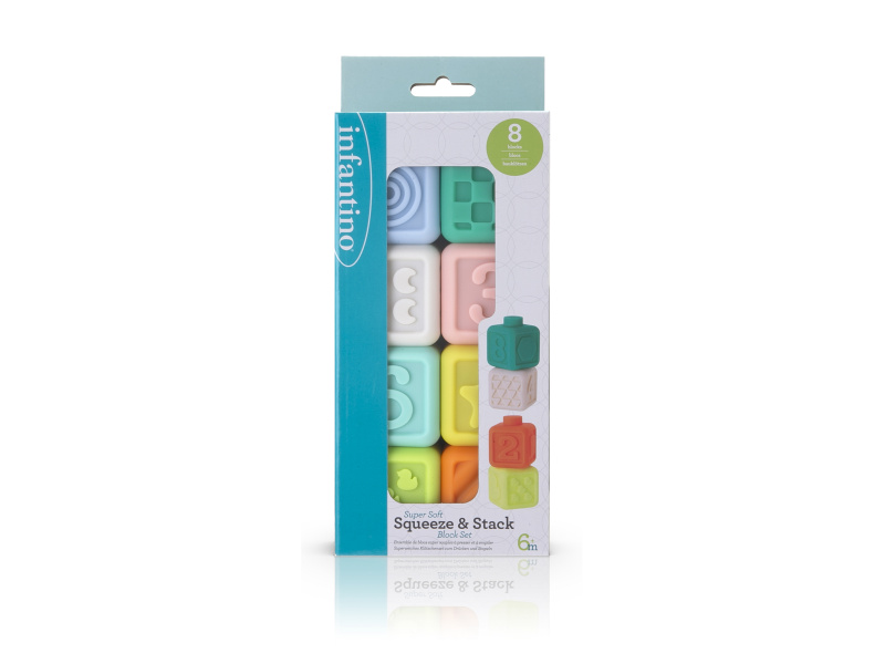 Měkké kostky v různých barvách a s různými texturami včetně čísel jsou propojitelné pro variabilní hraní. Pomáhají rozvíjet hmat i další smysly dítěte. Rozměry jednotlivé kostky: 48 x 48 x 48 mm Vhodné pro děti od 6 měsíců.