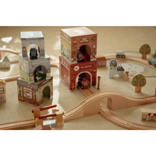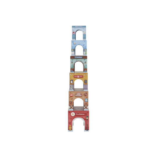Stavět, objevovat a hrát si! Tato nápaditá sada Little Duch obsahuje šest ilustrovaných kartonových kostek různých velikostí, které představují budovy jako požární stanici, garáž nebo poštu – a k nim 6 dřevěných vozidel, patřících k jednotlivým budovám. Děti mohou kostky stavět na sebe do vysoké věže i rozkládat je po podlaze a vytvářet celé městečko. Kostky lze skvěle kombinovat i s vláčkodráhou Little Dutch, kde vláček i autíčka pohodlně projedou pod kostkami jako pod mosty. Každá kostka má jinou ilustraci, která podporuje rozvoj fantazie, a každé vozidlo má své vlastní parkovací místo. Originální sada nabízí nekonečné možnosti her a příběhů – od záchranných misí po výlety do města – a podporuje rozvoj logického myšlení, kreativity i motoriky dítěte. Sadu tvoří 6 kartonových kostek a 6 dřevěných vozidel. Vyrobeno z odolného FSC certifikovaného dřeva a pevného kartonu. Rozměry největší kostky: 14 × 14 × 14 cm Vhodné pro děti od 18 měsíců.
