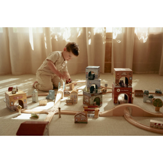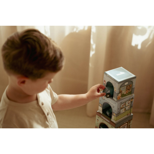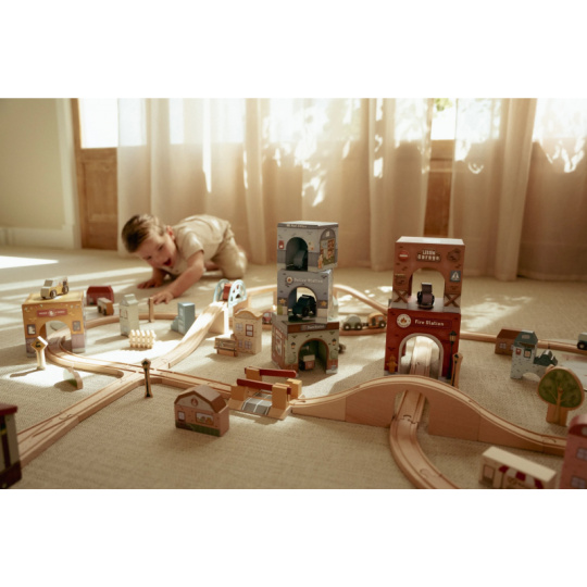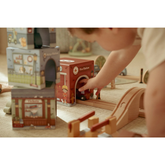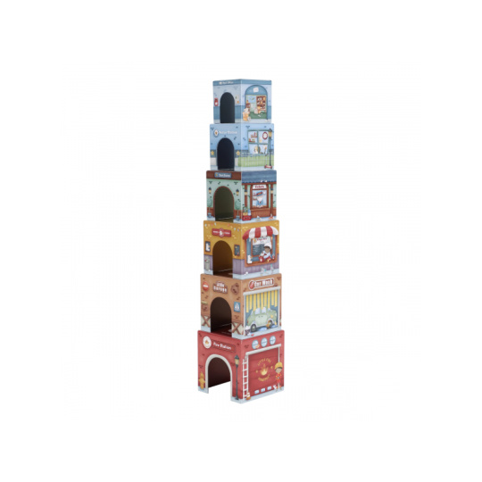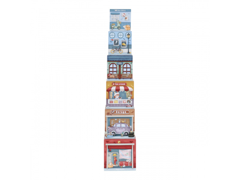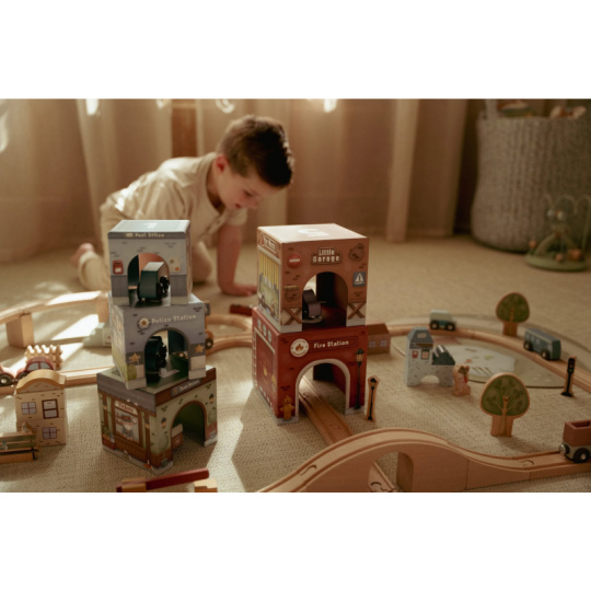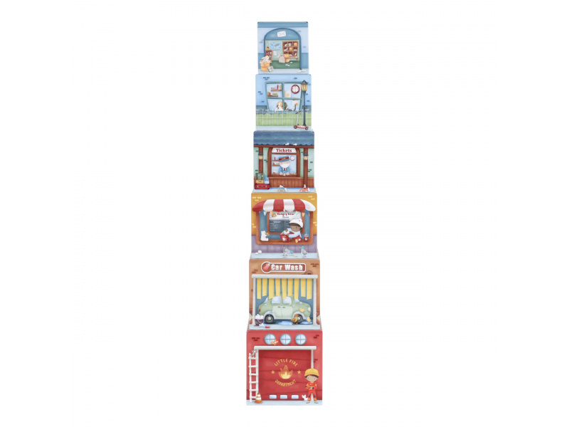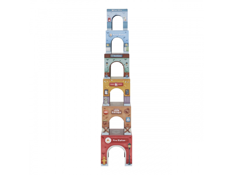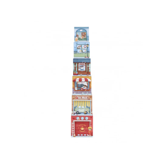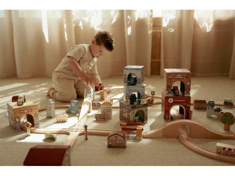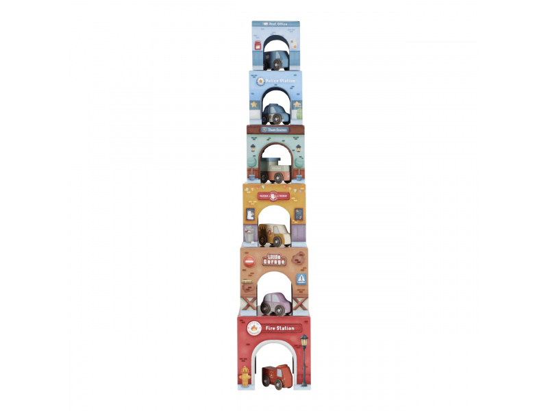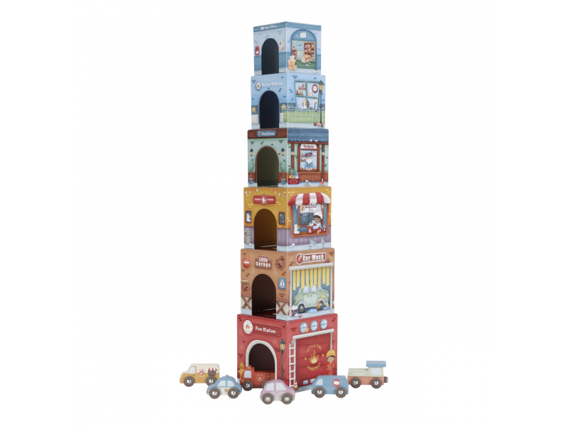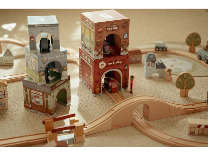 Stavět, objevovat a hrát si! Tato nápaditá sada Little Duch obsahuje šest ilustrovaných kartonových kostek různých velikostí, které představují budovy jako požární stanici, garáž nebo poštu – a k nim 6 dřevěných vozidel, patřících k jednotlivým budovám. Děti mohou kostky stavět na sebe do vysoké věže i rozkládat je po podlaze a vytvářet celé městečko. Kostky lze skvěle kombinovat i s vláčkodráhou Little Dutch, kde vláček i autíčka pohodlně projedou pod kostkami jako pod mosty. Každá kostka má jinou ilustraci, která podporuje rozvoj fantazie, a každé vozidlo má své vlastní parkovací místo. Originální sada nabízí nekonečné možnosti her a příběhů – od záchranných misí po výlety do města – a podporuje rozvoj logického myšlení, kreativity i motoriky dítěte. Sadu tvoří 6 kartonových kostek a 6 dřevěných vozidel. Vyrobeno z odolného FSC certifikovaného dřeva a pevného kartonu. Rozměry největší kostky: 14 × 14 × 14 cm Vhodné pro děti od 18 měsíců.