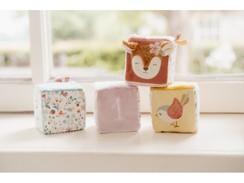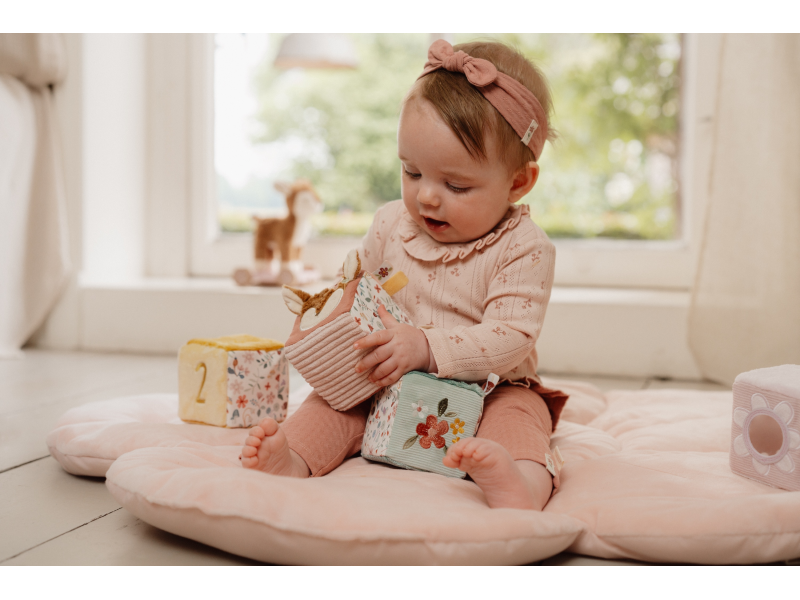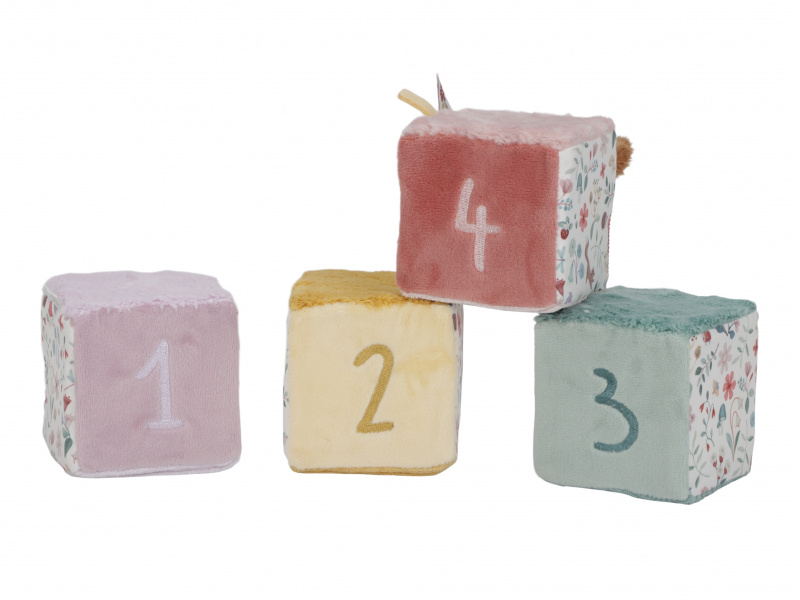 Měkké textilní kostky s krásnými motivy ze života na zahradě jsou díky svému provedení snadno uchopitelné malými dětskými ručičkami. Různorodé textury a vzory lákají dítě ke zkoumání, kostky navíc při pohybu jemně cinkají a chrastí. Hračka je součástí designové kolekce hraček a doplňků Little Dutch Fairy Garden inspirované životem na zahradě. Rozměry kostky: 8 x 8 x 8 cm Složení: 100% polyester Vhodné pro děti od narození.