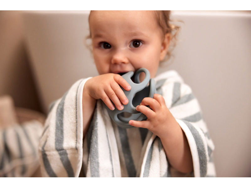 Originální kousátko ve tvaru míčku je vyrobené z jemného silikonu příjemného na dotek. Kousátko uleví citlivým dětským dásním při prořezávání prvních zoubků. Ve starším věku dítěte hračku využijete jako míček na hraní a kutálení. Rozměry: 9,5 x 9,5 cm Složení: 100% silikon Neobsahuje BPA ani PVC. Vhodné pro děti od narození.