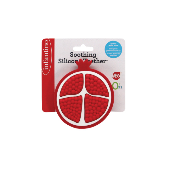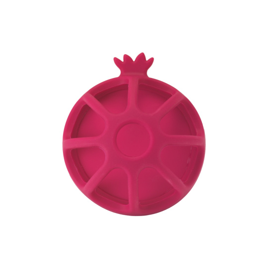 Kousátko v podobě granátového jablka je vyrobené z jemného měkkého silikonu. Různorodé textury lákají dítě ke zkoumání v ústech a pomáhají tak při prořezávání prvních zoubků. Lehounké kousátko má tvar pro snadné uchopení malými dětskými ručičkami. Vhodné pro děti od narození.