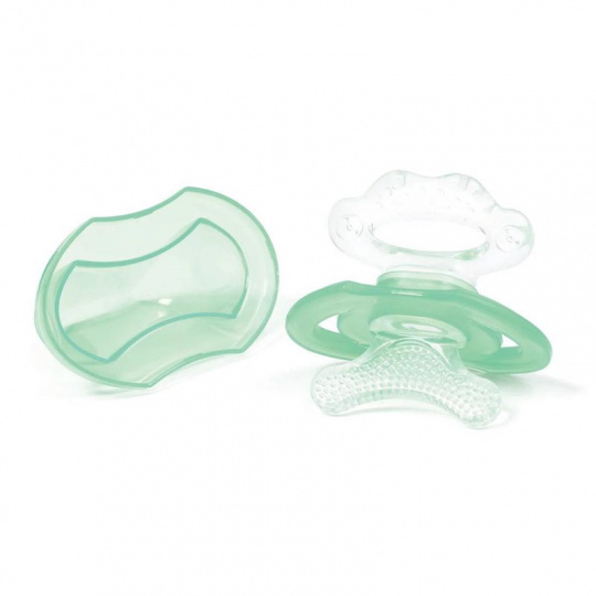 BABYONO Kousátko silikonový bez BPA ve tvaru dudlíku s krytem zelený 3m+