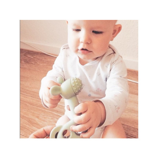 Kousátko s různorodými texturami ve tvaru žirafy je vyrobené z jemného silikonu příjemného na dotek. Kousátko uleví citlivým dětským dásním při prořezávání prvních zoubků. Jeho tvar umožňuje snadné držení malými dětskými ručičkami. Kousátko vyrobené ze silikonu s certifikací FDA neobsahuje žádné škodlivé látky a je tak zcela bezpečné pro vaše dítě. Rozměry: 12 x 8 x 4 cm Složení: 100% silikon Vhodné pro děti od 3 měsíců.