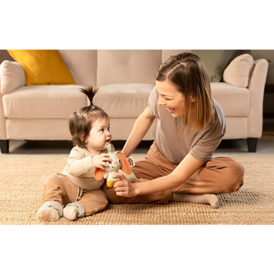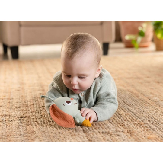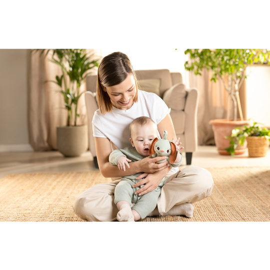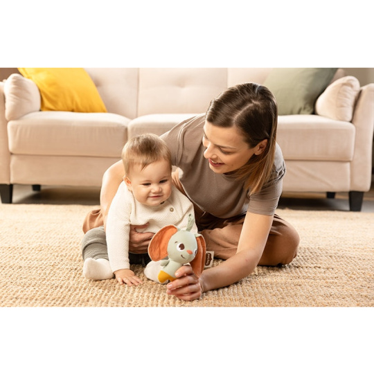 Roztomilý králíček Tiny Love pomáhá miminkům rozvíjet zvídavost a objevovat svět kolem sebe. Hračka navržená s láskou a péčí odborníky na vývoj dítěte podporuje emoční rozvoj miminka a dodává mu pocit bezpečí. Pozornost dítěte upoutají kontrastní barvy, jemné chrastění i různorodé textury. Díky poutku můžete hračku snadno zavěsit na kočárek či autosedačku, aby provázela vaše dítě i na cestách. Hračka je součástí udržitelné kolekce Tiny Love Garden of Adventures, která byla vytvořena s láskou a péčí o naši planetu. Kolekce, inspirovaná výtvory přírody, je navržena tak, aby podporovala dítě ve vývoji a objevování světa kolem sebe. Vyrobeno z materiálů odpovědně získaných z odpovědných zdrojů, které splňují nejvyšší standardy udržitelnosti a jsou certifikovány dle standardu OEKO-TEX® STANDARD 100. Rozměry: 19 x 15 cm Složení: bavlna, recyklovaný polyester Vhodné pro děti od narození.
