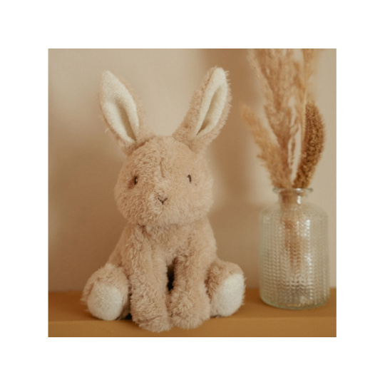 Malý plyšový králíček je ideální jako mazlík do postýlky pro lepší usínání vašeho dítěte. Králíček umí sedět a může se tak stát i krásnou dekorací v dětském pokojit. Hračka je součástí designové kolekce hraček a doplňků Little Dutch Newborn Naturals. Výška: 15 cm Složení: 100% polyester Výplň je vyrobena ze 100% recyklovaného polyesteru s certifikací GRS (Global Recycled Standard). Možno prát v pračce na jemný program při 30°C. Vhodné pro děti od narození.