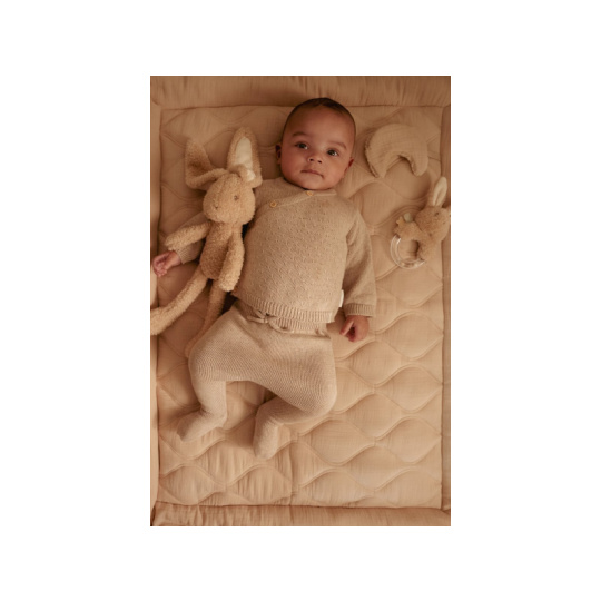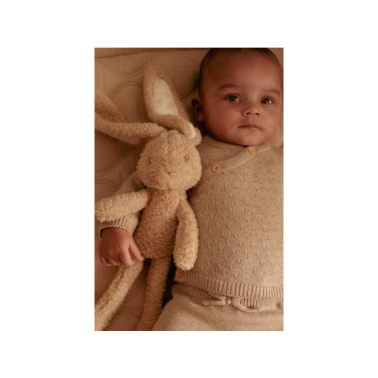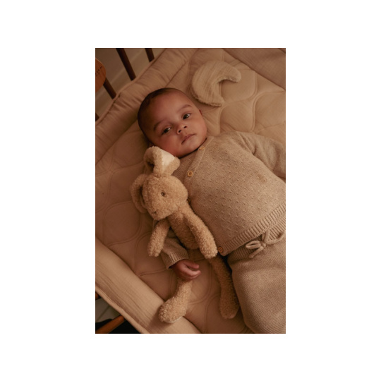 Něžný plyšový králíček je ideální jako mazlík do postýlky pro lepší usínání vašeho dítěte. Králíček umí i sedět a může se tak stát i krásnou dekorací v dětském pokojit. Hračka je součástí designové kolekce hraček a doplňků Little Dutch Newborn Naturals. Rozměry: 32 x 13 x 13 cm Složení: 100% polyester Výplň je vyrobena ze 100% recyklovaného polyesteru s certifikací GRS (Global Recycled Standard). Možno prát v pračce na jemný program při 30°C. Vhodné pro děti od narození.