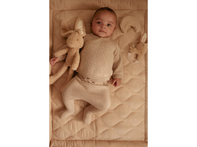 Něžný plyšový králíček je ideální jako mazlík do postýlky pro lepší usínání vašeho dítěte. Králíček umí i sedět a může se tak stát i krásnou dekorací v dětském pokojit. Hračka je součástí designové kolekce hraček a doplňků Little Dutch Newborn Naturals. Rozměry: 32 x 13 x 13 cm Složení: 100% polyester Výplň je vyrobena ze 100% recyklovaného polyesteru s certifikací GRS (Global Recycled Standard). Možno prát v pračce na jemný program při 30°C. Vhodné pro děti od narození.