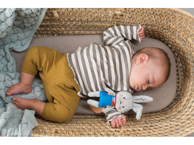 Závěsná plyšová hračka v podobě roztomilého králíčka Ryleeho při pohybu chrastí, jeho uši při zmáčknutí šustí. Součástí hračky je i pružné kousátko ve tvaru listu. Díky závěsnému kroužku hračku snadno připevníte např. na autosedačku či kočárek. Hračka pomáhá rozvíjet jednotlivé smysly, motoriku a emoční inteligenci dítěte. Rozměr: cca 17 cm Vhodné pro děti od narození.