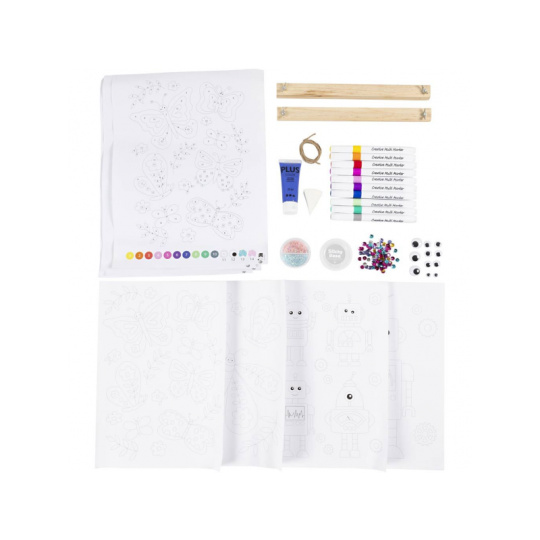 Objevte radost z tvoření a barev s touto originální sadou, která dětem od 6 let umožní vytvořit 4 krásné obrázky podle čísel. Kombinuje kresbu fixami, malbu a dekoraci s třpytivými prvky – a každý výtvor se stane osobním uměleckým dílem. Maluj, čísli a zdob: • Děti vybarvují motivy podle čísel – snadno a s jistotou, že výsledek bude vždy krásný • Na výběr jsou motivy jako motýli nebo roboti – pro každou náladu • Pomocí třpytivé modelíny, flitrů a pohyblivých očí dodají výtvorům zábavný 3D efekt Vlastní galerie na zdi: • Po dokončení si děti mohou obrázky zarámovat pomocí dřevěných lišt na zavěšení, které si samy nabarví • Hotová díla se stanou dekorací dětského pokoje nebo milým dárkem Zábava i rozvoj v jednom: • Podporuje soustředění, trpělivost a porozumění barvám a číslům • Děti zažijí radost z dokončeného obrázku a získají chuť tvořit dál Obsah balení: 4 potištěná malířská plátna Sada barevných fixů Třpytivá modelína Flitry Samolepicí očička Akrylová barva a štětec Lepidlo Dřevěné závěsy Návod s číselnou předlohou Vhodné pro děti od 6 let.