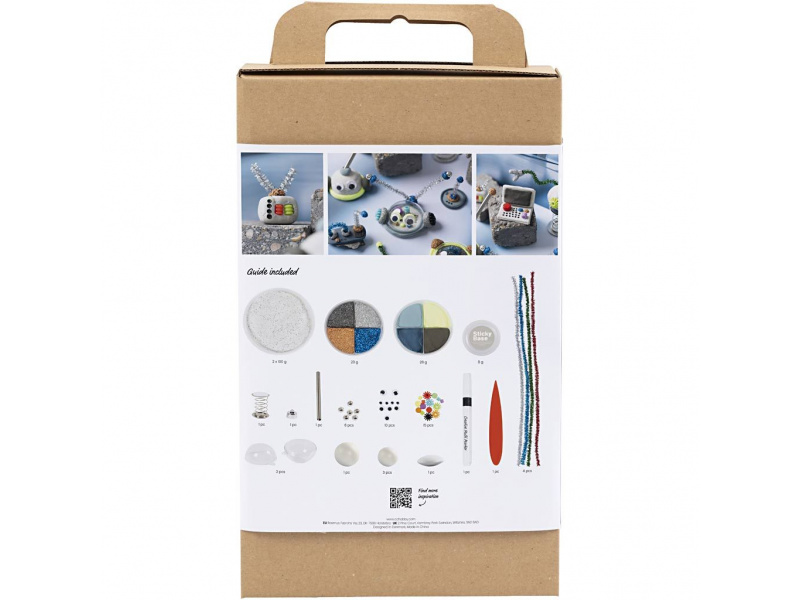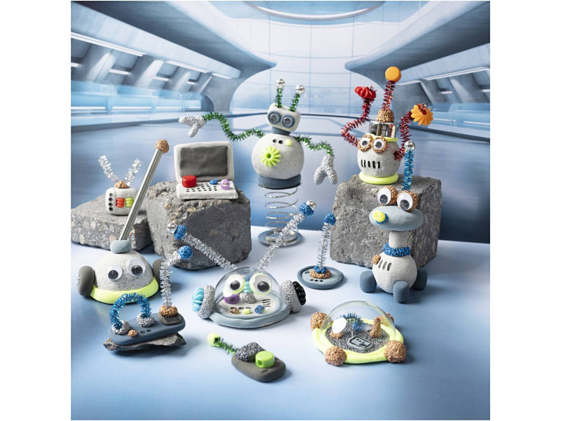 Probuďte dětskou fantazii a postavte si vlastní armádu robotů! Tato kreativní sada je ideální pro malé vynálezce od 6 let, kteří milují tvoření, techniku a zábavné modelování. Spojuje různé modelovací hmoty a dekorativní prvky do jedinečného projektu, který děti nadchne. Roboti s osobností: • Pomocí hmot Stone Clay, Silk Clay® a Foam Clay® vytvoří děti tělo, končetiny i výrazy jednotlivých robotů • Dodané materiály jako drátky, peříčka, očička nebo korálky umožňují dodat robotům anténky, ruce, jazyky i neobvyklé boty • Každý robot může být jiný – a přesně takový, jakého si dítě vysní Tvoření, které rozvíjí: • Podporuje kreativitu, jemnou motoriku a představivost • Děti se učí kombinovat materiály, experimentují a získávají jistotu v práci rukama • Skvělé pro samostatné tvoření i společné rodinné odpoledne Obsah balení: Modelovací hmota Stone Clay, Silk Clay® a Foam Clay® Polystyrenové koule Samolepicí očička Chlupaté drátky Peříčko Korálky Permanentní fix Návod s inspirací Vhodné pro děti od 6 let.