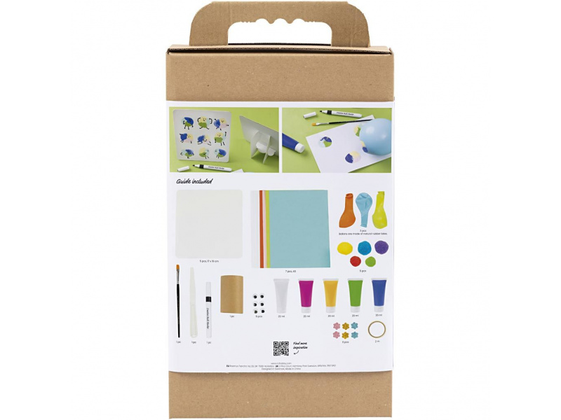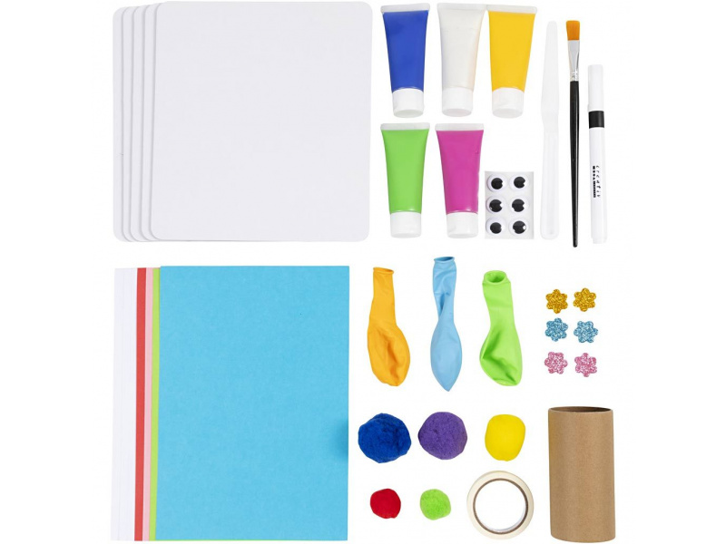 Objevte s dětmi radost z malování hravou formou! Tato kreativní sada je určena dětem od 4 let a nabízí pět různých výtvarných technik, které rozvíjí fantazii, smysly i jemnou motoriku – a to zábavně a beze stresu. Hravé malování bez štětců: • Děti si vyzkouší malování balónkem, vatovou kuličkou, kartonovou trubičkou, škrabkou i maskovací páskou • Každý obrázek si mohou originálně dozdobit pomocí pohyblivých očí, květinek z EVA pěny nebo pomponků • Po dokončení se obrázky díky skrytým nožičkám postaví, takže se ihned stanou krásnou výstavkou na poličce či stolku Tvoření, které rozvíjí: • Podporuje smyslové vnímání, zručnost i představivost • Pomáhá dětem soustředit se, relaxovat a vyjádřit své nápady skrze barvy a struktury • Vhodné i pro děti bez předchozích výtvarných zkušeností Obsah balení: 5 dekoračních kartonových destiček s výklopnými nožkami Barvy a štětec Škrabka, balón, pom-pomy, kartonová trubička Maskovací páska Očička, květinky z EVA pěny, fix Návod s popisem technik Vhodné pro děti od 4 let.