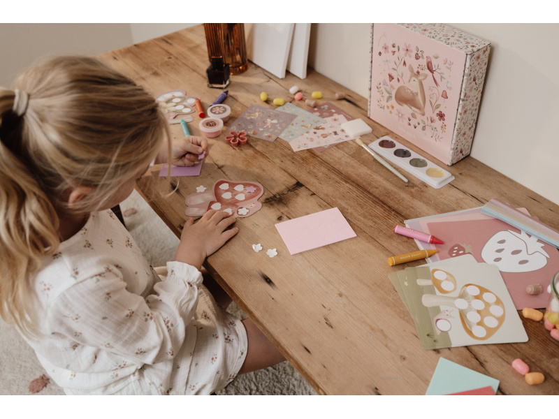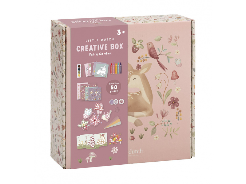Extra velká kreativní sada obsahuje potřeby pro různé druhy výtvarného tvoření včetně pastelek, vodovek, samolepek, modelíny apod. Vše je zabalené v krásném boxu, do kterého vše po skončení hry snadno uklidíte. Kreativní sada vaše děti nejen zabaví, ale pomáhá i rozvíjet jejich jemnou motoriku a stimluje kreativní myšlení. Sada je součástí designové kolekce hraček a doplňků Little Dutch Fairy Garden inspirované životem na zahradě. Rozměry: 24 x 24 x 6 cm Vhodné pro děti od 3 let.