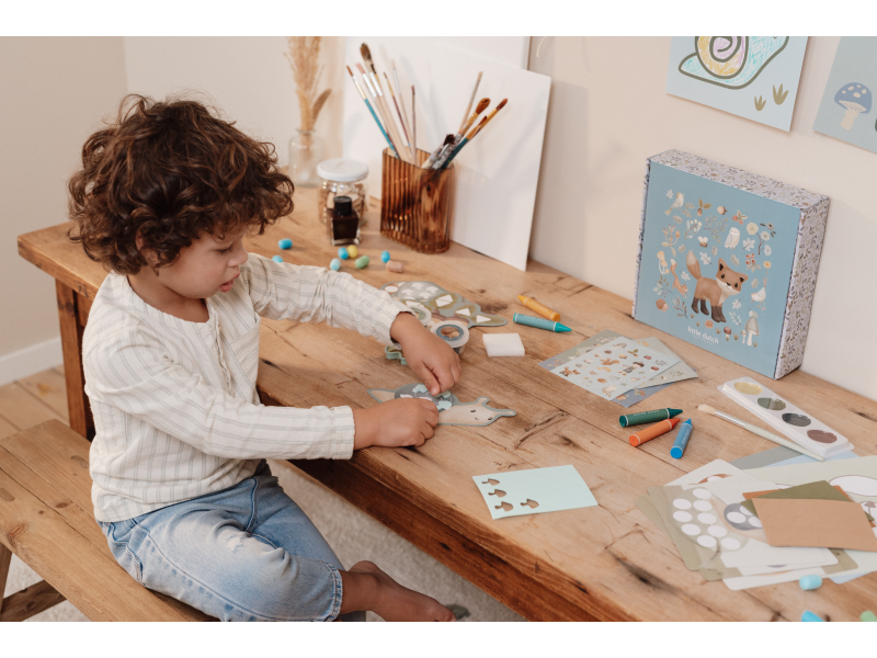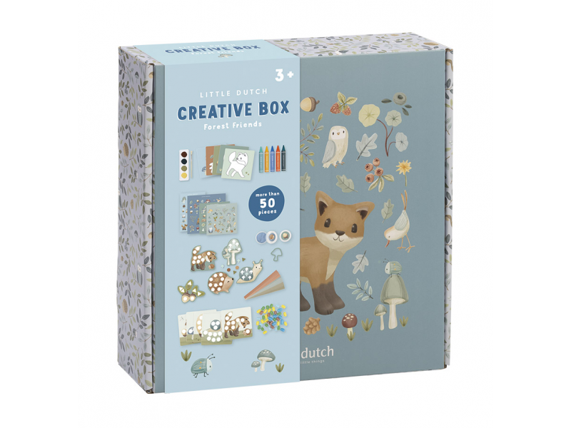 Extra velká kreativní sada obsahuje potřeby pro různé druhy výtvarného tvoření včetně pastelek, vodovek, samolepek, modelíny apod. Vše je zabalené v krásném boxu, do kterého vše po skončení hry snadno uklidíte. Kreativní sada vaše děti nejen zabaví, ale pomáhá i rozvíjet jejich jemnou motoriku a stimluje kreativní myšlení. Sada je součástí designové kolekce hraček a doplňků Little Dutch Forest Friends inspirované životem v lese. Rozměry: 24 x 24 x 6 cm Vhodné pro děti od 3 let.