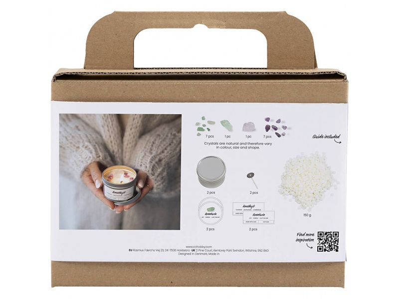 Vneste do svého domova klid, energii a styl s ručně odlévanými svíčkami s přírodními krystaly. Tato kreativní sada vám umožní vytvořit dvě luxusní svíčky ze 100% sójového vosku, které kombinují krásu, symboliku a wellness atmosféru. Tvoření, které navodí pohodu: • Odlijete dvě designové svíčky do kulatých kovových dóz • Každá svíčka obsahuje pečlivě vybraný přírodní krystal, který vyzařuje pozitivní energii • Pomocí dekorativních samolepek svíčku dozdobíte a zároveň se dozvíte víc o vlastnostech použitého krystalu Síla dvou krystalů: • Ametyst – přináší uklidnění, podporuje kvalitní spánek a chrání před nočními můrami • Aventurín – dodává sebedůvěru a klid, podporuje odvahu zkoušet nové věci a vnímat svět v pozitivním světle Jednoduché tvoření pro každého: • Sada je vhodná i pro začátečníky – ideální pro relaxační tvořivé odpoledne • Výsledné svíčky jsou krásným doplňkem do ložnice, koupelny nebo obývacího pokoje Každý krystal je přírodní originál – tvar, velikost a zabarvení se mohou lišit. Obsah balení: 2 kovové dózy Sójový vosk (veganský, čistě hořící) Knoty Krystaly (ametyst a aventurín) Korálky pro dekoraci Samolepky s popisem vlastností krystalů Návod