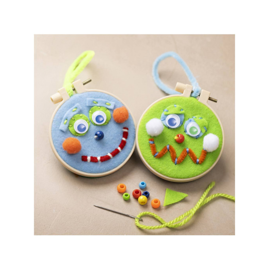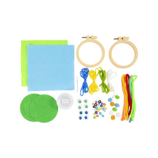 Barevná a zábavná sada, která umožní dětem tvořit vlastní výšivkové dekorace s obličeji. Kreativní aktivita plná fantazie, barev a hravých detailů – ideální pro děti, které se chtějí poprvé seznámit s vyšíváním a tvořením z různých materiálů. První vyšívání pro malé ruce: • Děti vytvoří dvě originální dekorace s výšivkou z obou stran • Stačí kombinovat přízi, plst, korálky, očička a další materiály a vytvořit vlastní tváře s očima, nosem a pusou • Hotové dekorace se slepují a zavěšují – ideální jako ozdoba do pokojíčku nebo jako dárek Tvoření, které rozvíjí: • Posiluje jemnou motoriku, trpělivost a soustředění • Podporuje kreativní myšlení a práci s barvami, tvary a detaily • Projekt vhodný pro děti od 5 let – jednoduchý a zábavný i bez předchozích zkušeností Obsah balení: 1× výšivkový rámeček 1× jehla na křížkový steh Plstěné tvary Barevná příze Korálky Chenille drátky Pom-pomy Pohyblivá očička Lepidlo Podrobný návod Vhodné pro děti od 5 let.